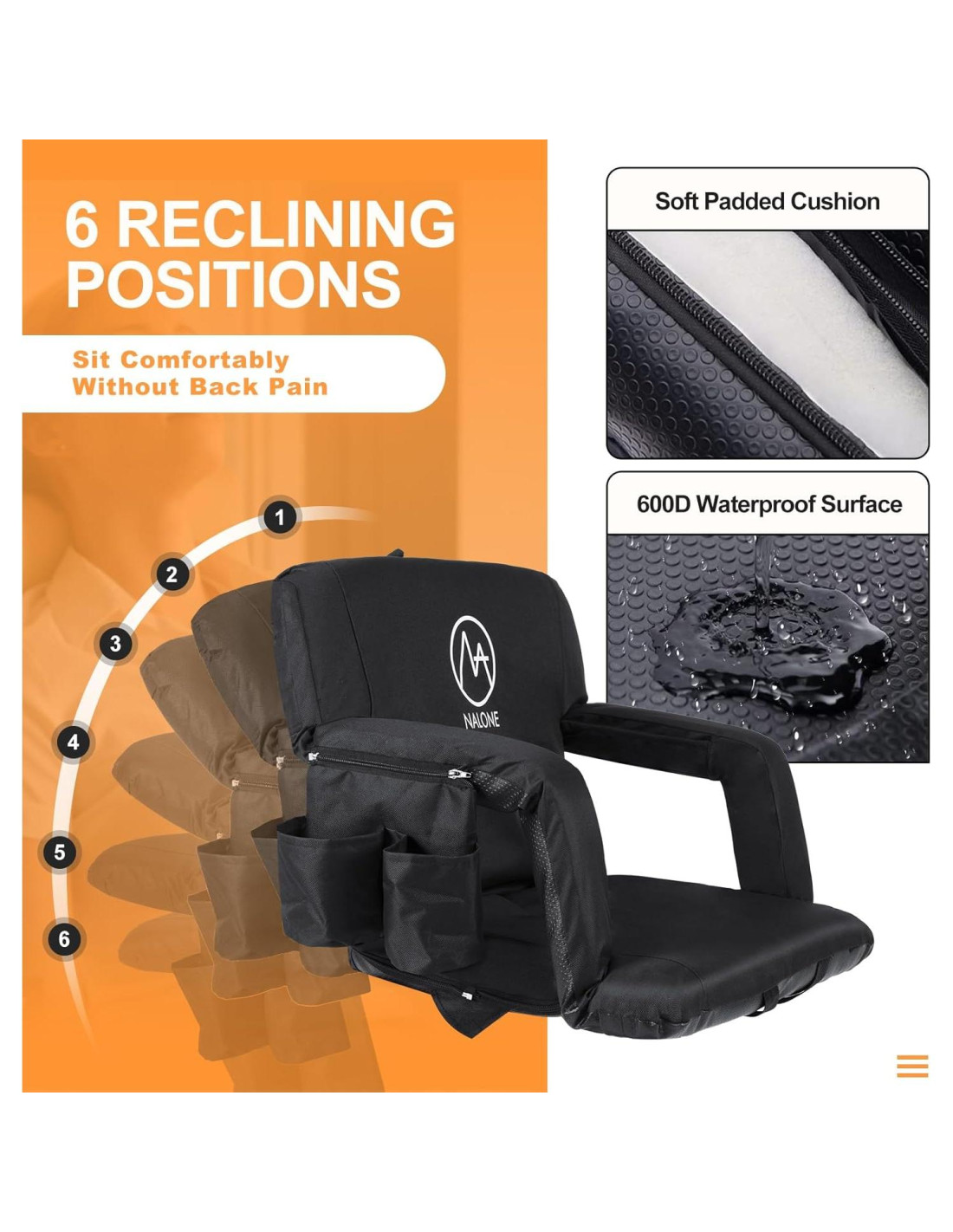 - Sentarse en las Gradas Más Cómodo - La silla de estadio NALONE con suave soporte para la espalda y reposabrazos anchos cuenta con un cojín acolchado cubierto de poliéster 600D montado en un marco de acero resistente. Puedes reclinarte, poner tu peso sobre ella y mantener los codos en los reposabrazos sin problema. Te permite sentarte en bancos y gradas durante toda una tarde sin dolor de espalda.