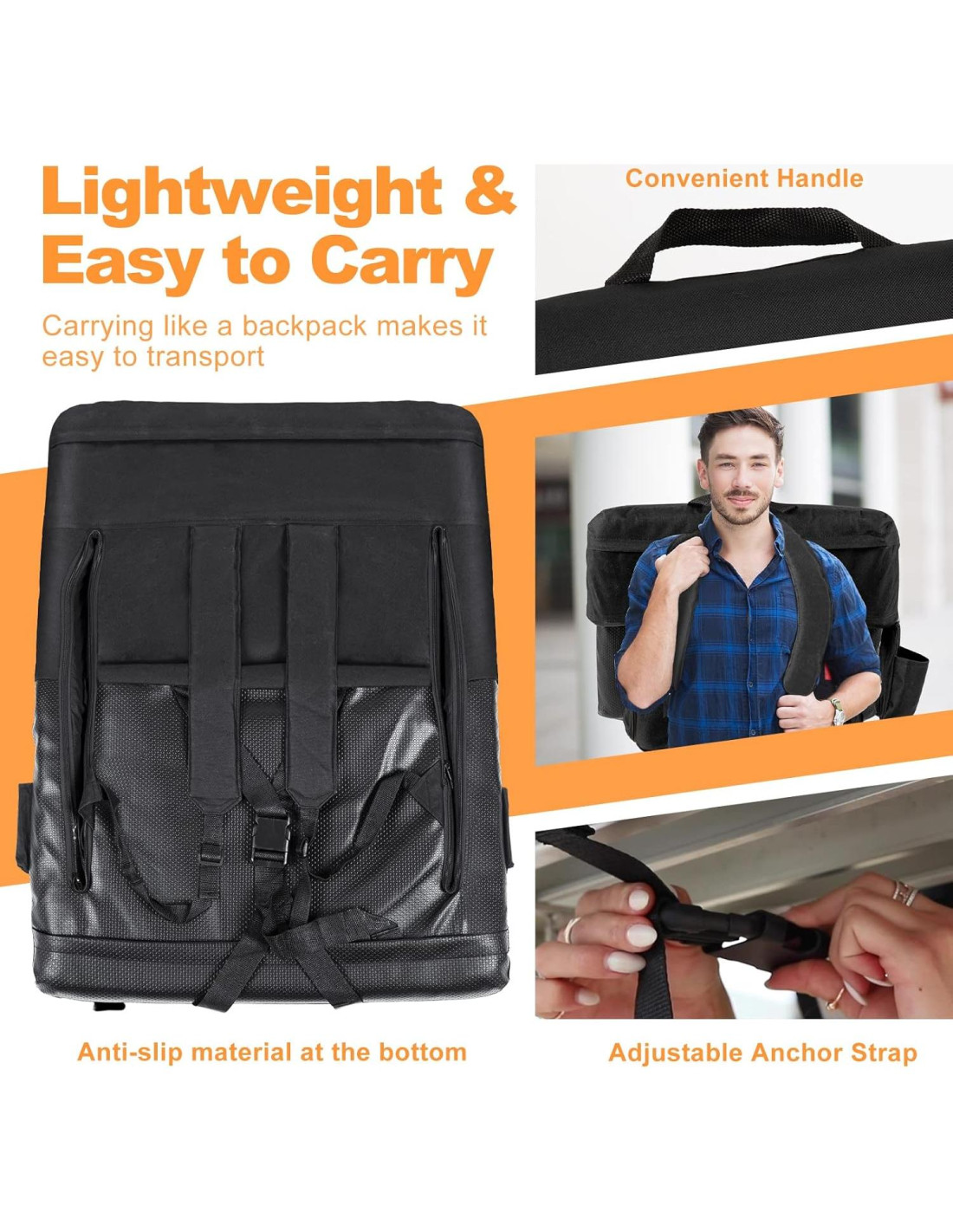 - Diseño Antideslizante y Material Impermeable - La parte inferior de la silla está diseñada con una capa gráfica antideslizante de goma, por lo que no tienes que preocuparte por resbalar incluso en un banco mojado. Viene con correas de anclaje adicionales para mantenerla en su lugar sin deslizarse. La superficie de la silla es resistente al desgaste e impermeable, por lo que no hay necesidad de preocuparse por la lluvia. También es fácil de limpiar y mantener.