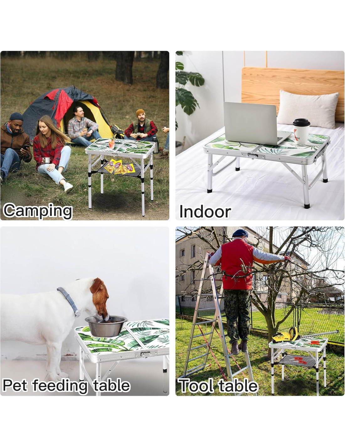 - Alturas Ajustables: Este tamaño de mesa portátil pequeña abierta es: 24" x 16" (61 cm x 40,64 cm), las patas ajustables ofrecen 3 alturas: 10" (25,4 cm), 19" (48,26 cm), 24" (61 cm). El tamaño plegado es 16" x 12" x 3" (40,64 cm x 30,48 cm x 7,62 cm) cuando se pliega por la mitad. Adapte fácilmente la mesa a sus necesidades y disfrute de la flexibilidad que proporciona