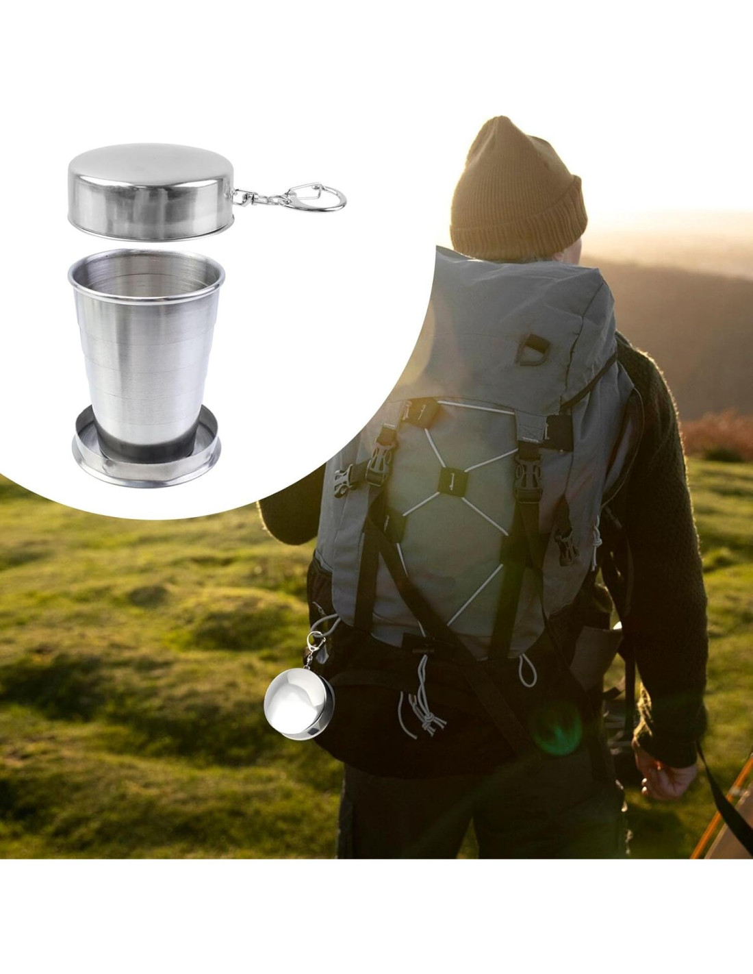 - Accesorio de Llavero Integrado: Cada taza plegable viene con un llavero, permitiendo un acoplamiento seguro a mochilas, cinturones para portabilidad sin manos