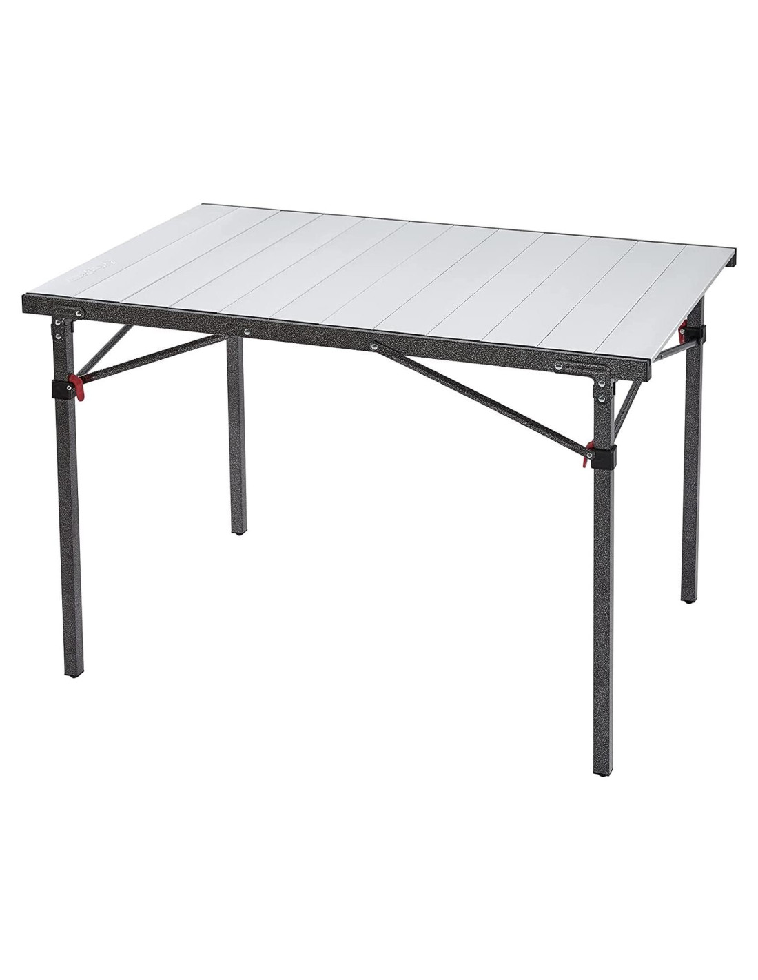 - ALUMINIO ULTRALIGERO SIN COSTURAS Gran área de escritorio para 4-6 personas, tamaño 101.8 cm * 70.2 cm * 70.2 cm. Peso 5.9 kg. La parte superior de la mesa de aleación de aluminio es más ligera que el acero. Y es impermeable y a prueba de óxido, fácil de limpiar, solo límpiala con un paño húmedo. El material de aleación de aluminio resiste perfectamente el duro entorno exterior.