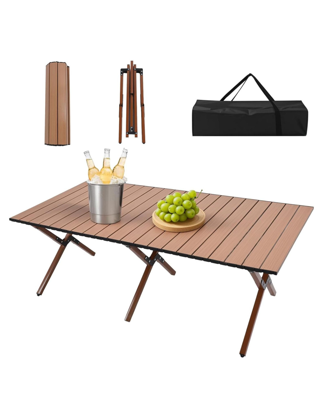 - PLEGABLE Y PORTÁTIL: Su diseño plegable hace que la mesa sea fácil de transportar. Puedes guardarla convenientemente cuando no esté en uso, lo que la convierte en una opción ideal para entusiastas del aire libre.