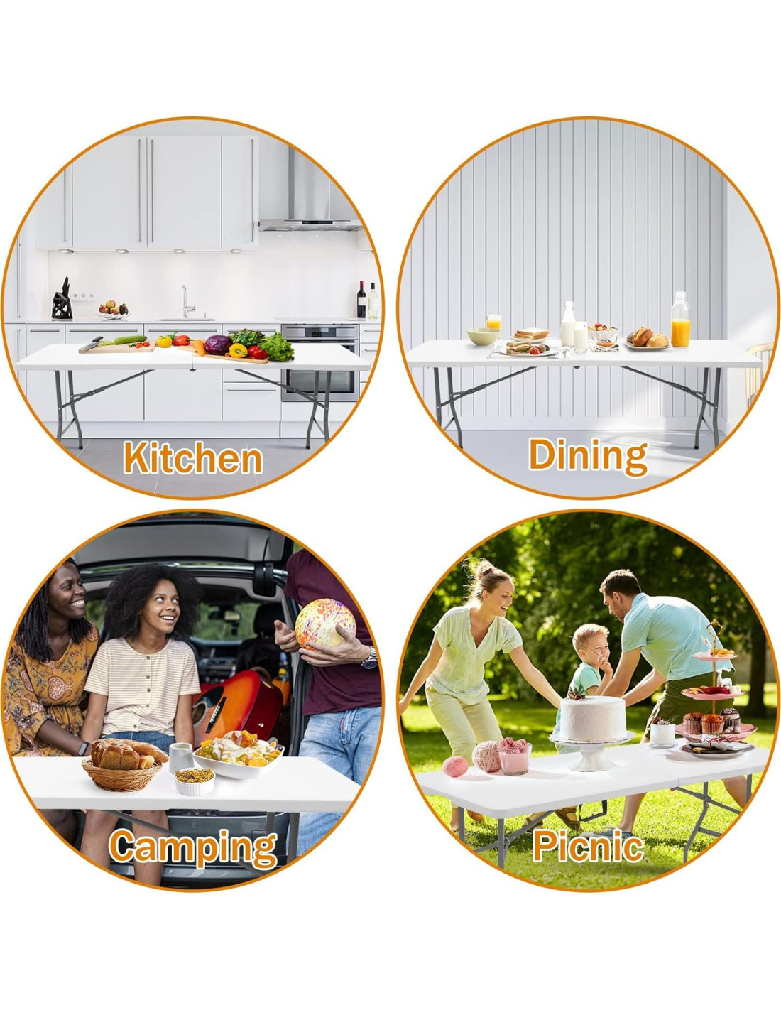 - [MULTIUSO]: Muy adecuada para mesa de picnic al aire libre o mesa de cumpleaños, mesa de comedor plegable, mesa portátil para barbacoa, mesa de juegos, o como mesa de comedor plegable, mesa plástica de exhibición, e incluso para establecer estaciones de trabajo para oficinas en casa y otras actividades interiores y exteriores. Puedes guardar la mesa plegable y ponerla en el maletero del coche, y luego ir de picnic con tu amigo