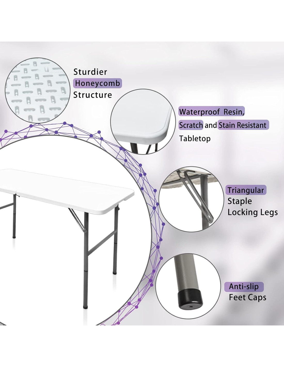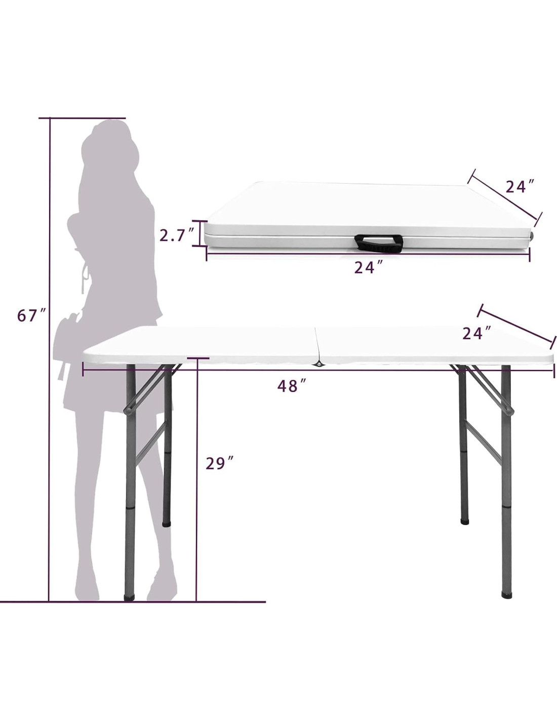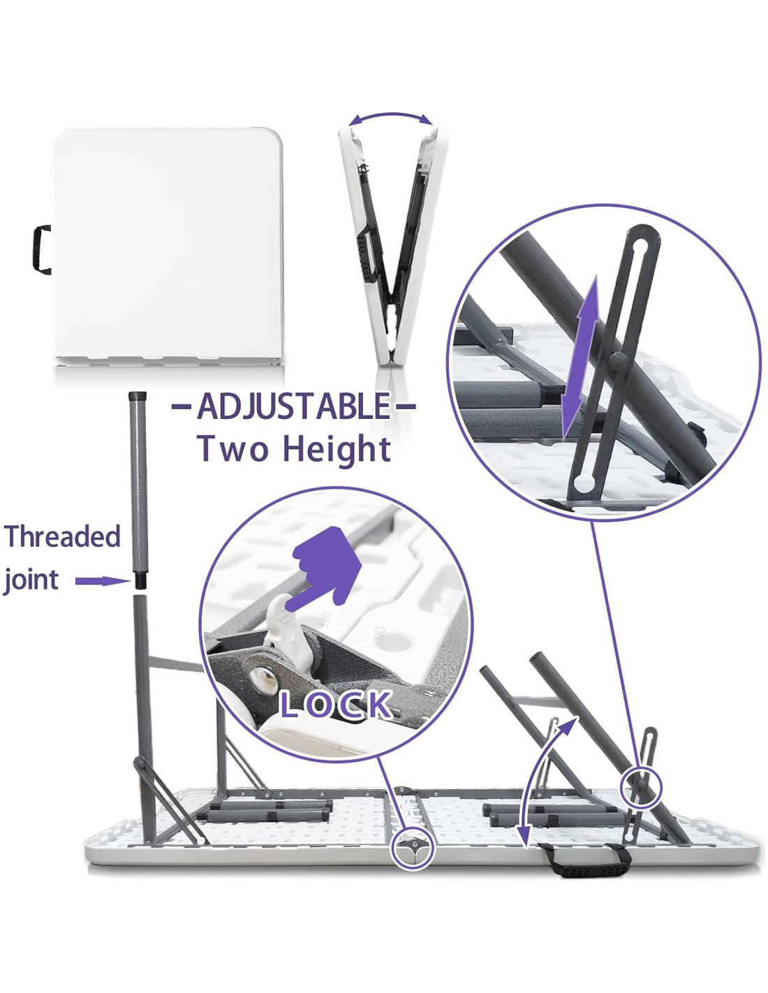 - Diseño Simple y Elegante: El diseño minimalista blanco hace que esta mesa plegable para exteriores se integre en cualquier escena, y el tamaño es adecuado para 2-6 personas. Ofrece un espacio perfecto para cartas, rompecabezas, juegos, manualidades, picnics y más.
