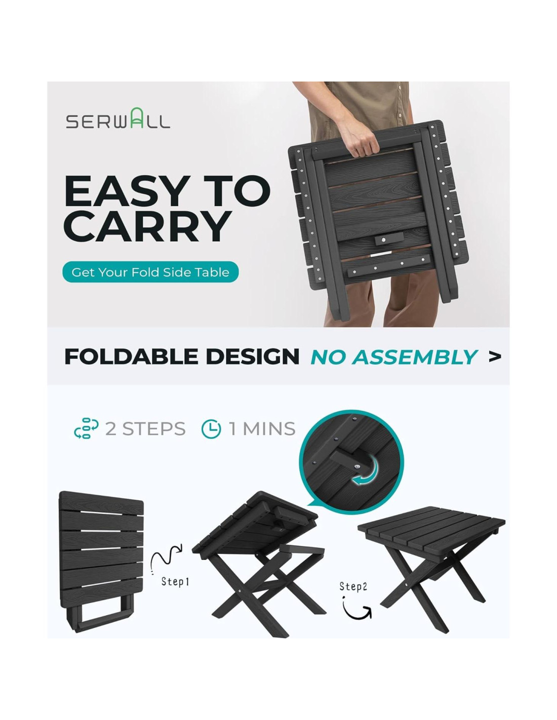 - [Mesa Lateral Plegable para Exterior] La Mesa Lateral Adirondack SERWALL cuenta con un diseño plegable que reduce significativamente su huella cuando está plegada, proporcionando una solución óptima para ahorrar espacio para los entusiastas del aire libre.