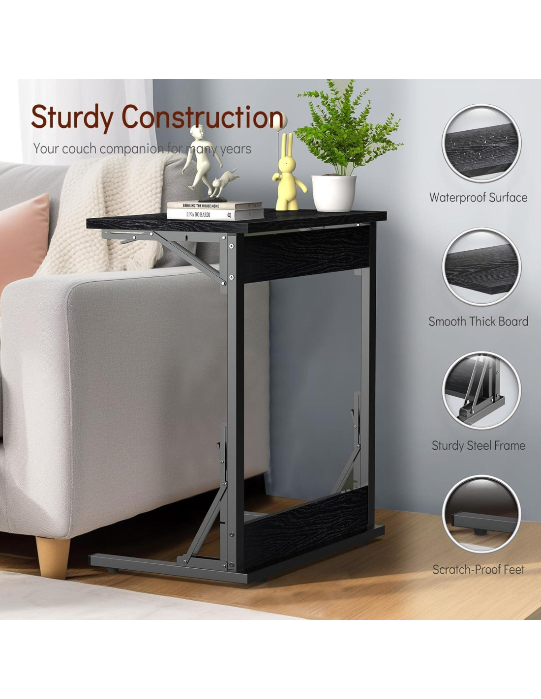 - Mesa lateral C versátil: Perfecta para usar como mesa de extremo de sofá, bandeja de TV, mesa de noche, soporte para laptop o mesa de comedor para ancianos; mantiene café, libros y bocadillos fácilmente accesibles
