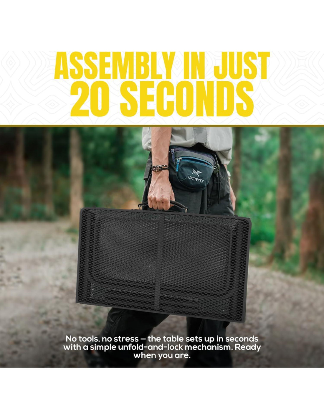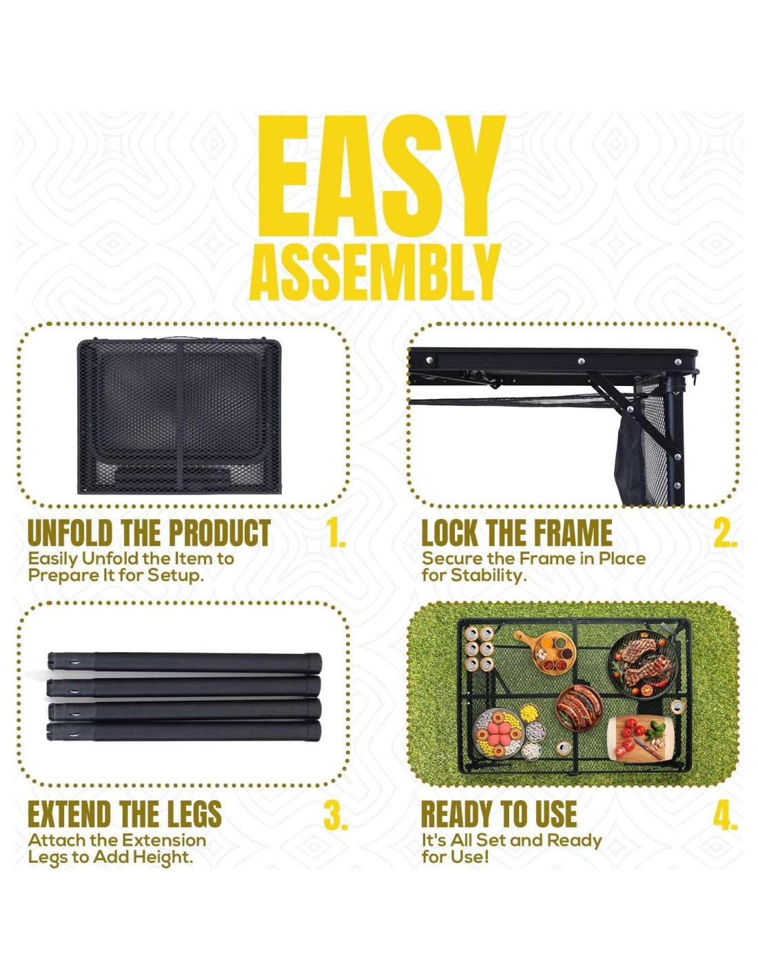 - MESA DE PARRILLA PARA EXTERIOR - Fabricada con malla de metal de alta calidad para una estabilidad y durabilidad superiores. Soporta hasta 40 kg en la superficie.