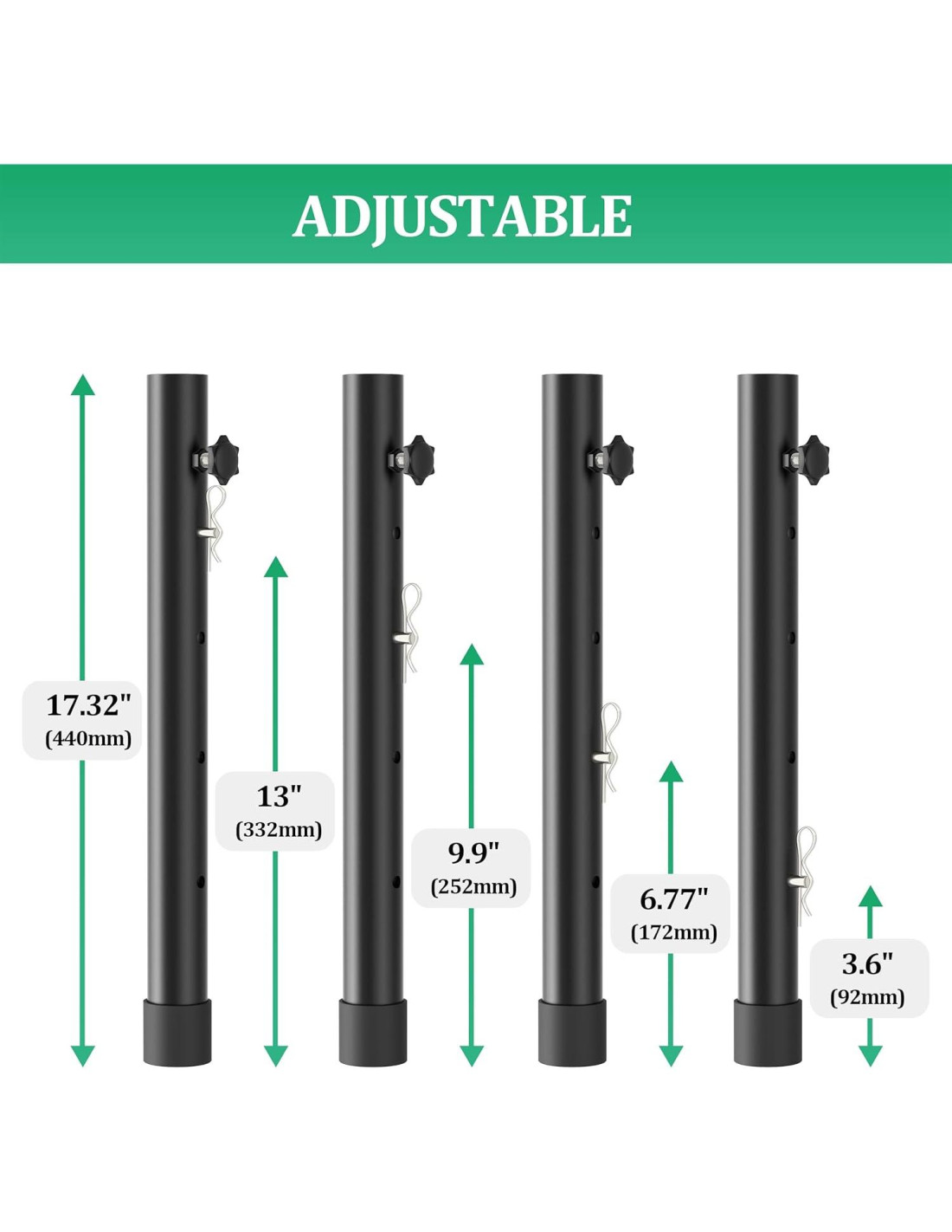 - Opción Saludable: Si tienes dolor de espalda por encorvarte sobre una mesa con patas plegables tradicionales mientras trabajas. Creímos que los elevadores de mesa plegable con 4 niveles y alturas eran la mejor opción. Entonces tuviste suerte y descubriste estas extensiones de altura de patas de mesa.