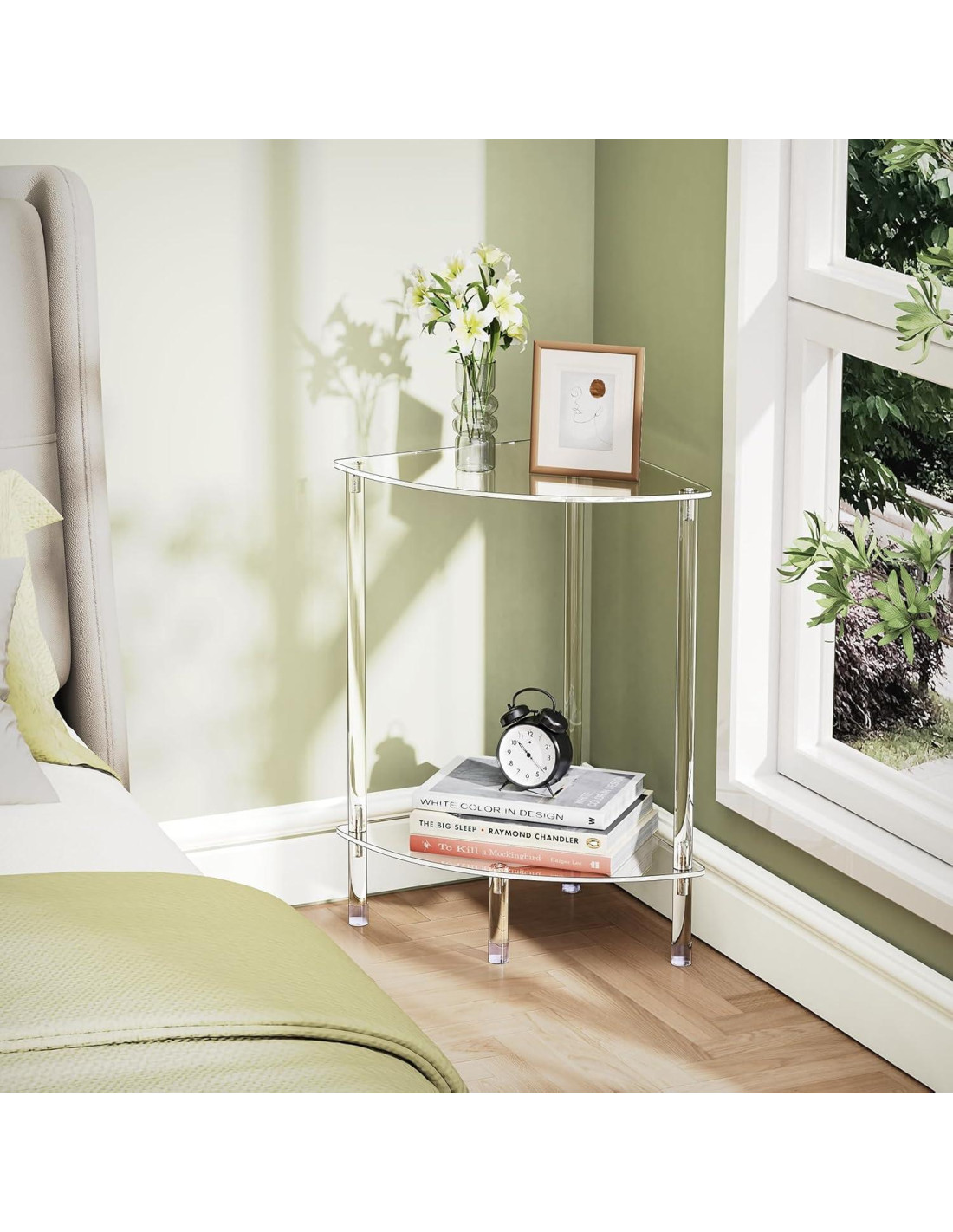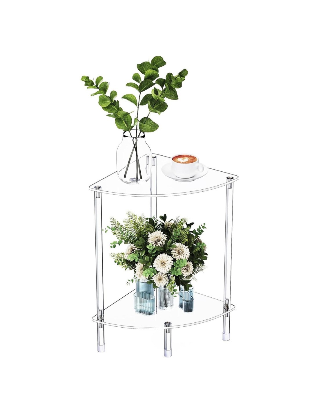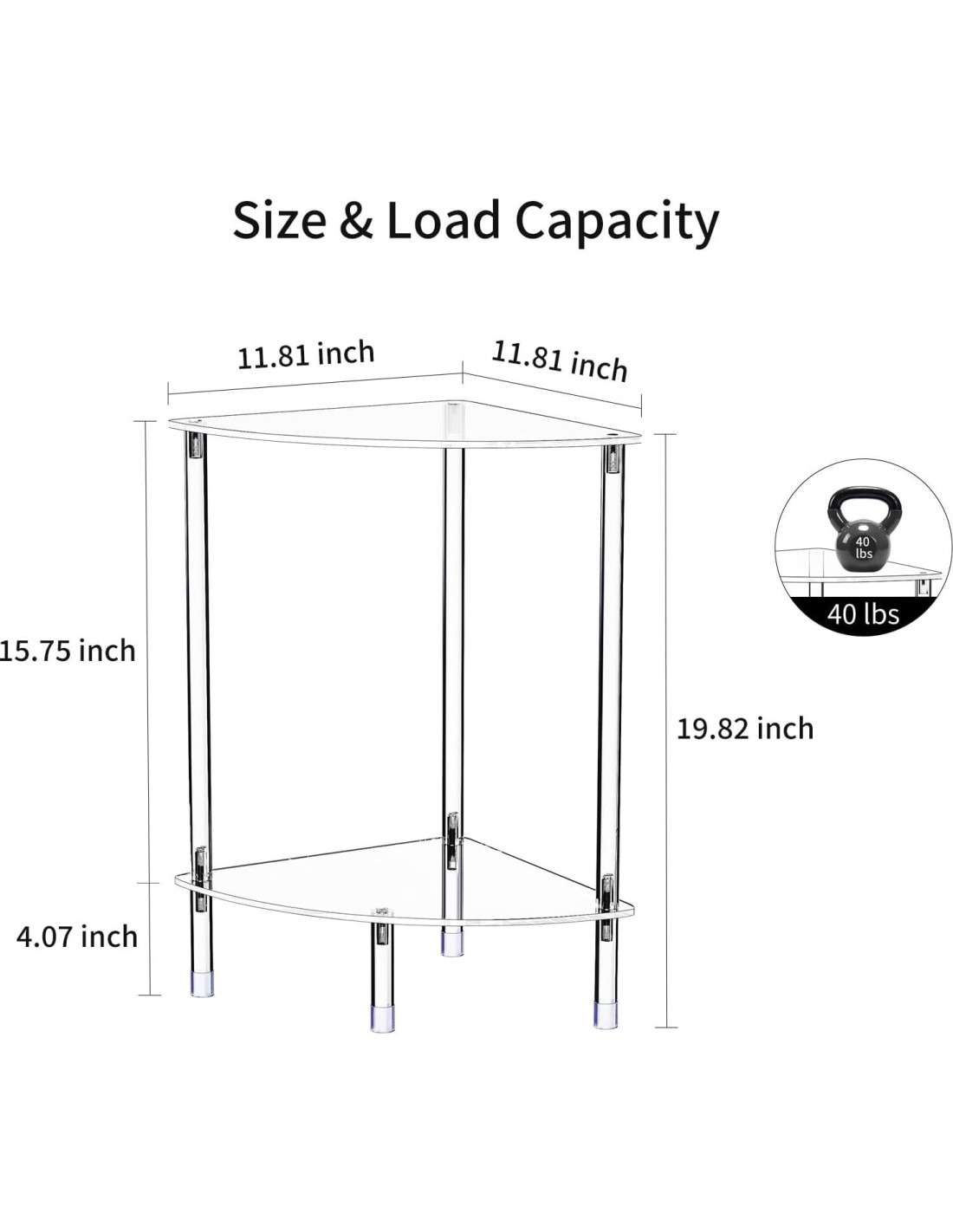 - Mesa Lateral de Acrílico Triangular Transparente de 2 Niveles: La mesa de esquina está hecha de material acrílico que es suave, transparente, de alta resistencia, duradero, ligero y fácil de limpiar. La mesa lateral de acrílico puede soportar hasta 18.14 kg.