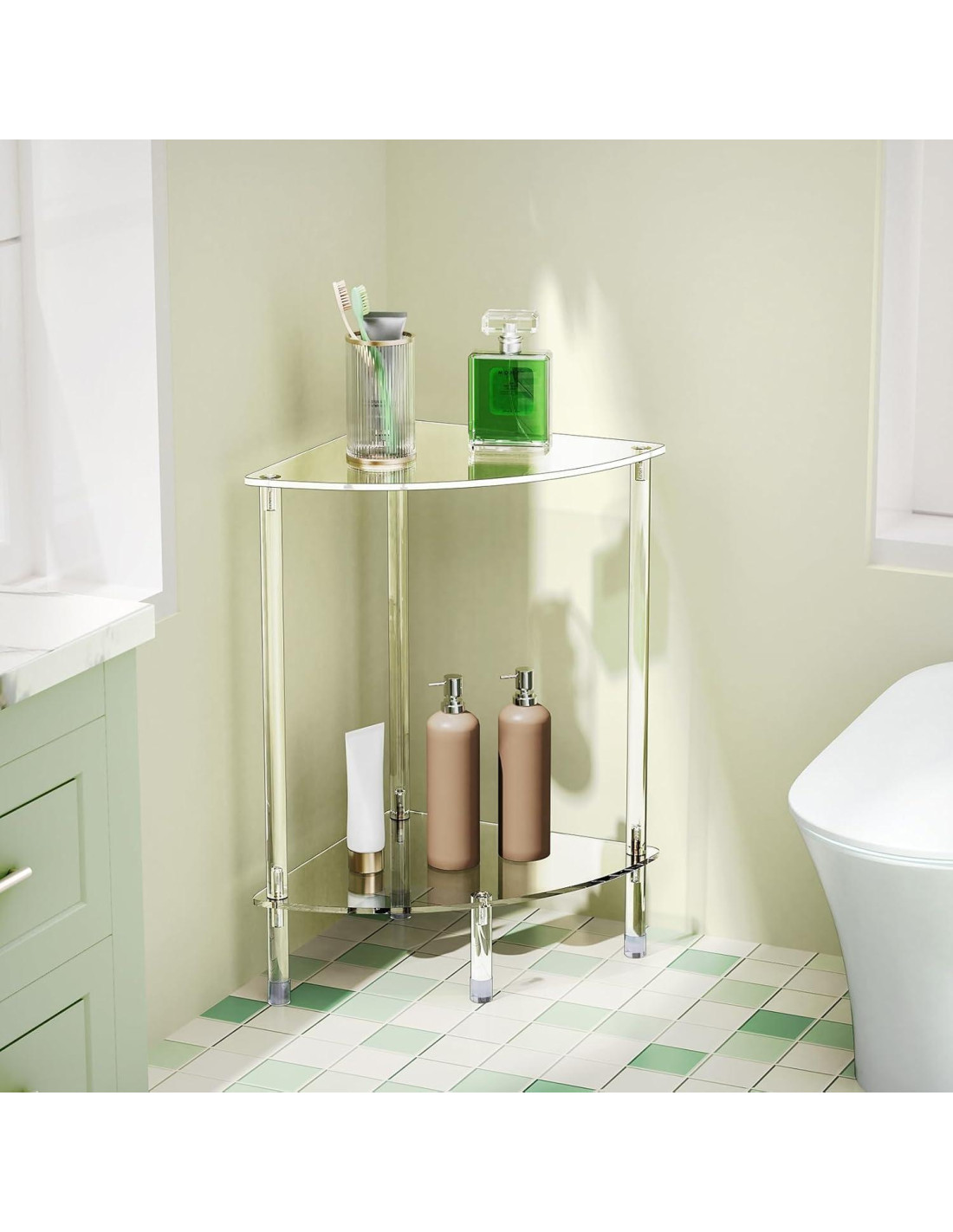 - Gran Capacidad para Espacios Pequeños: Las dimensiones de la mesa de esquina de acrílico son 30 cm L x 30 cm W x 50.3 cm H. El diseño de marco de 2 niveles para el estante de almacenamiento en esquina aumenta la capacidad de almacenamiento sin ocupar mucho espacio en el suelo.