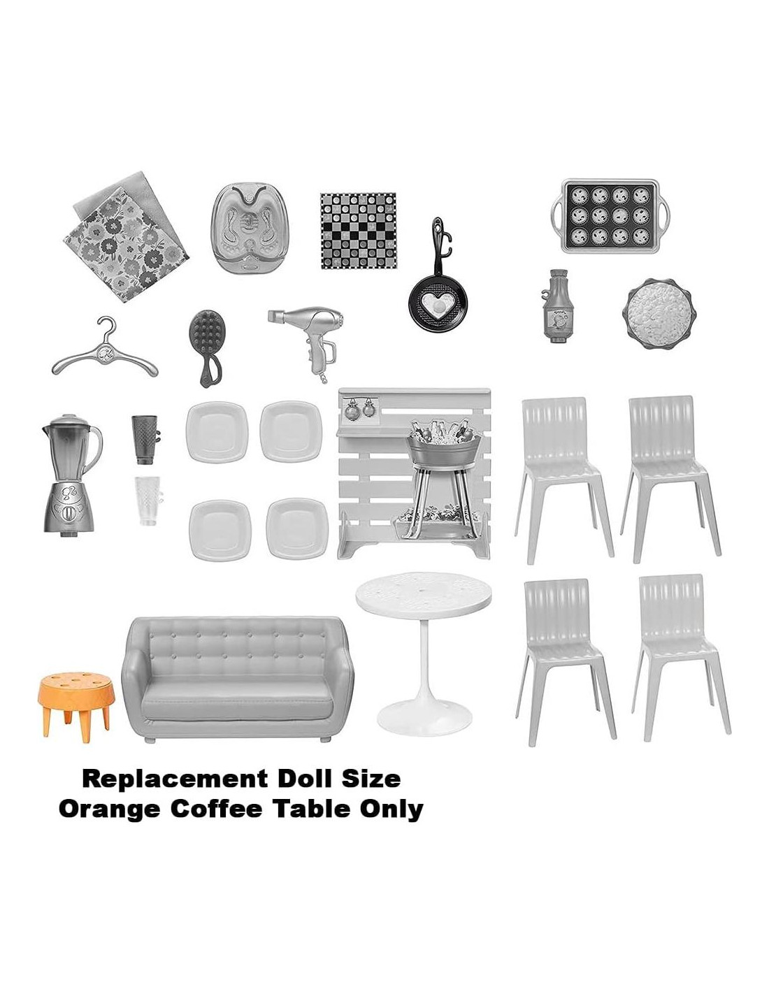 - INCLUYE 1 Mesa de Café Naranja Tamaño Muñeca de Barbie