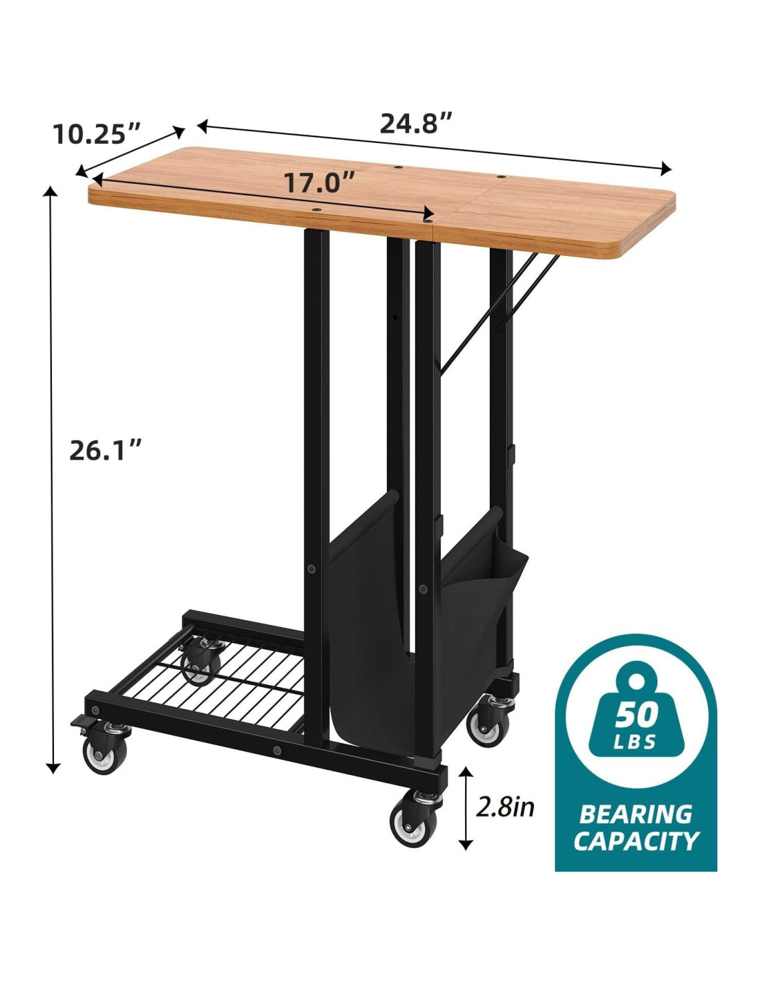 - Mesita de noche plegable: 17"L x 10.25"W x 26.1"H (43,18 cm x 26,04 cm x 66,32 cm), la longitud de la parte superior de la mesa desplegada es de 24.8" (62,87 cm), ampliando el área de trabajo, esta mesa de sofá se puede usar como mesita de noche, mesa para laptop, mesa lateral de sofá, ideal para la sala de estar y el dormitorio
