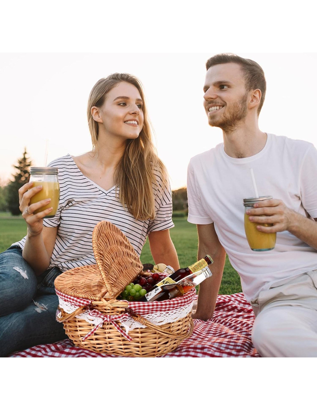 - Compañero de Picnic para 4 Personas: este set de cesta de mimbre con forro proporciona todo lo que necesitas para un picnic para hasta 4 personas, puedes usarlo por separado o combinado; Disfruta del tiempo con amigos y familiares sin preocuparte por olvidar algo en casa