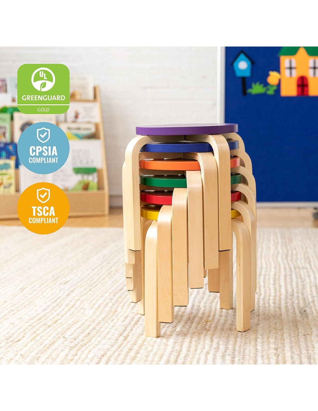 - Juego de Taburetes de Madera Curvada: Dale a los niños un asiento propio en un dormitorio, sala de juegos o aula con este juego de 6 piezas de taburetes apilables; combínalos con mesas para niños para manualidades, juegos de educación STEAM y más