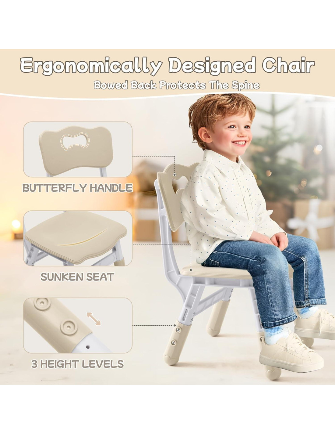 - Diseñado Especialmente para Niños: El juego de mesa y sillas para niños de GITAWUSA presenta esquinas redondeadas y arcos circulares, asegurando que no haya daño para los niños. El respaldo arqueado y el asiento cóncavo pueden corregir la postura de sentado de los niños y proteger su columna vertebral, acompañando a los niños a crecer de manera saludable.