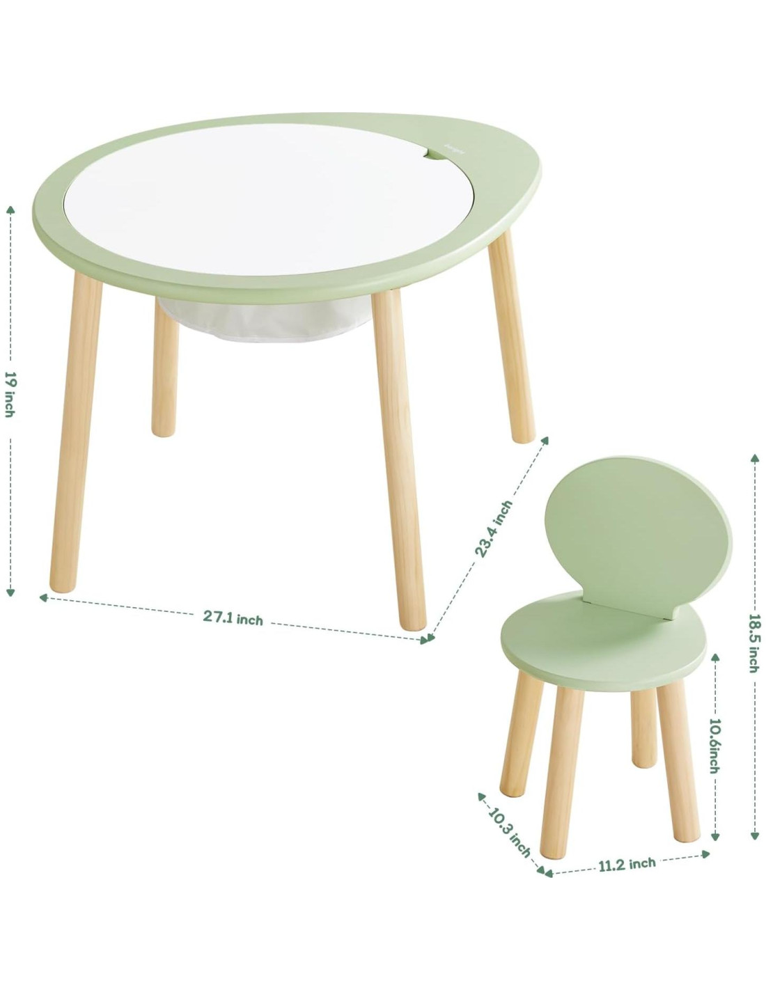 - [Diversión multifuncional] El conjunto de mesa y sillas para niños Beright es un centro de actividades que permite a los niños leer, dibujar, escribir, pintar y jugar juegos, todo en un solo lugar. La mesa tiene dos lados con diferentes funciones. Un lado de la mesa es una pizarra para dibujar y escribir con tiza, el otro lado es para leer y jugar.