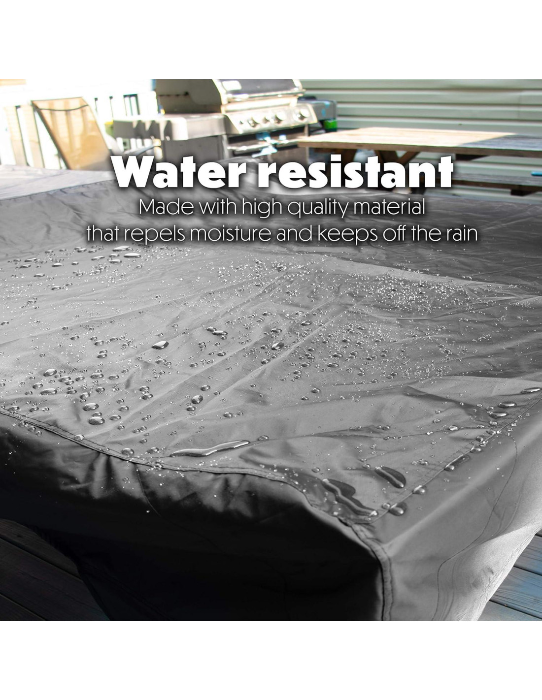 - CUBIERTA RESISTENTE AL AGUA AYUDA A MANTENER LA MESA SECA - Material de alta calidad repele la humedad y mantiene la lluvia alejada. Sin embargo, NO dejes tu mesa afuera en eventos climáticos extremos como huracanes, tormentas, lluvias intensas, vientos fuertes, etc