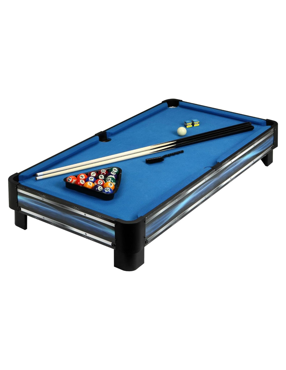 - Componentes incluidos: Palos de 36 pulgadas (2), tiza (2), juego de bolas de billar (16), cepillo de mesa, mesa de juego, triángulo para apilar