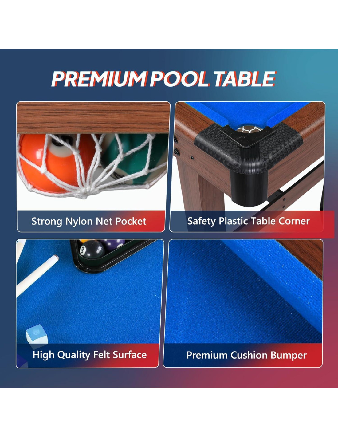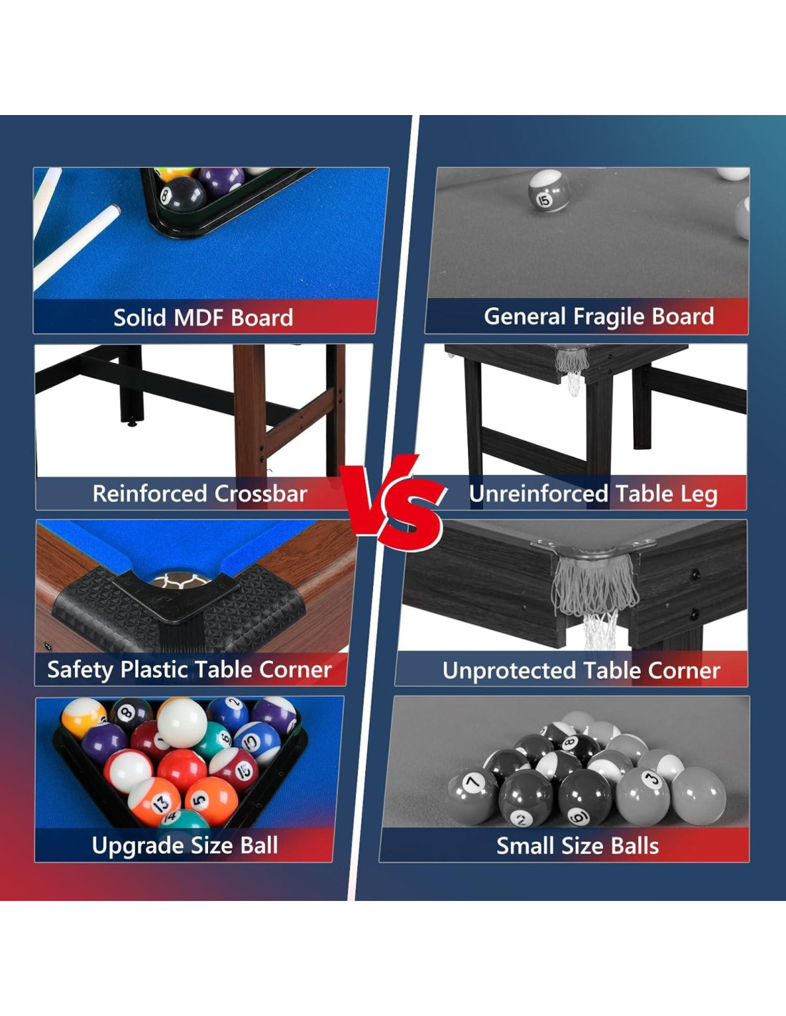 - Accesorios Completos - El juego de mesa de billar viene con todos los accesorios que necesitas: 16 bolas, 2 cues, 2 tizas, 1 cepillo y 1 triángulo. El tamaño mejorado de las bolas de billar contribuye a una mejor experiencia de juego. Es perfecto para una sala de juegos, fiesta en casa, bar, etc. diferentes ocasiones.
