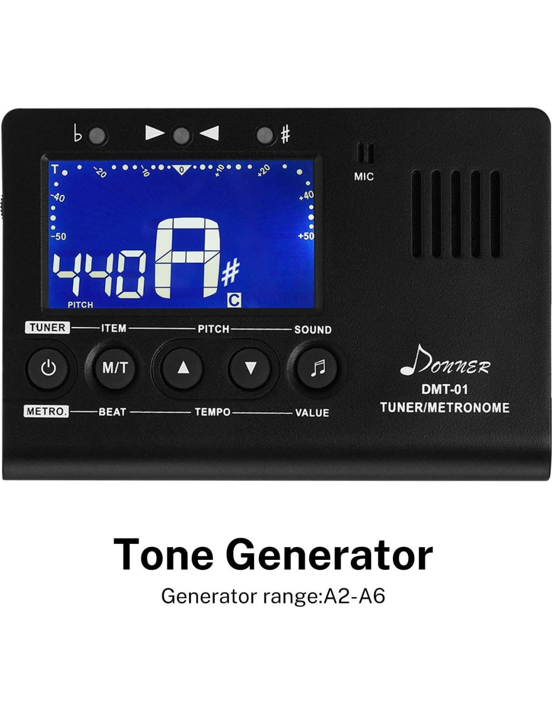 Donner Afinador de Metrónomo para Todos los Instrumentos - Guitarra, Bajo, Violín, Ukulele, Trompeta, Cromático, Clarinete, Flauta, 3 en 1 Metrónomo Digital con Afinador/Metrónomo/Generador de Tonos, DMT-01