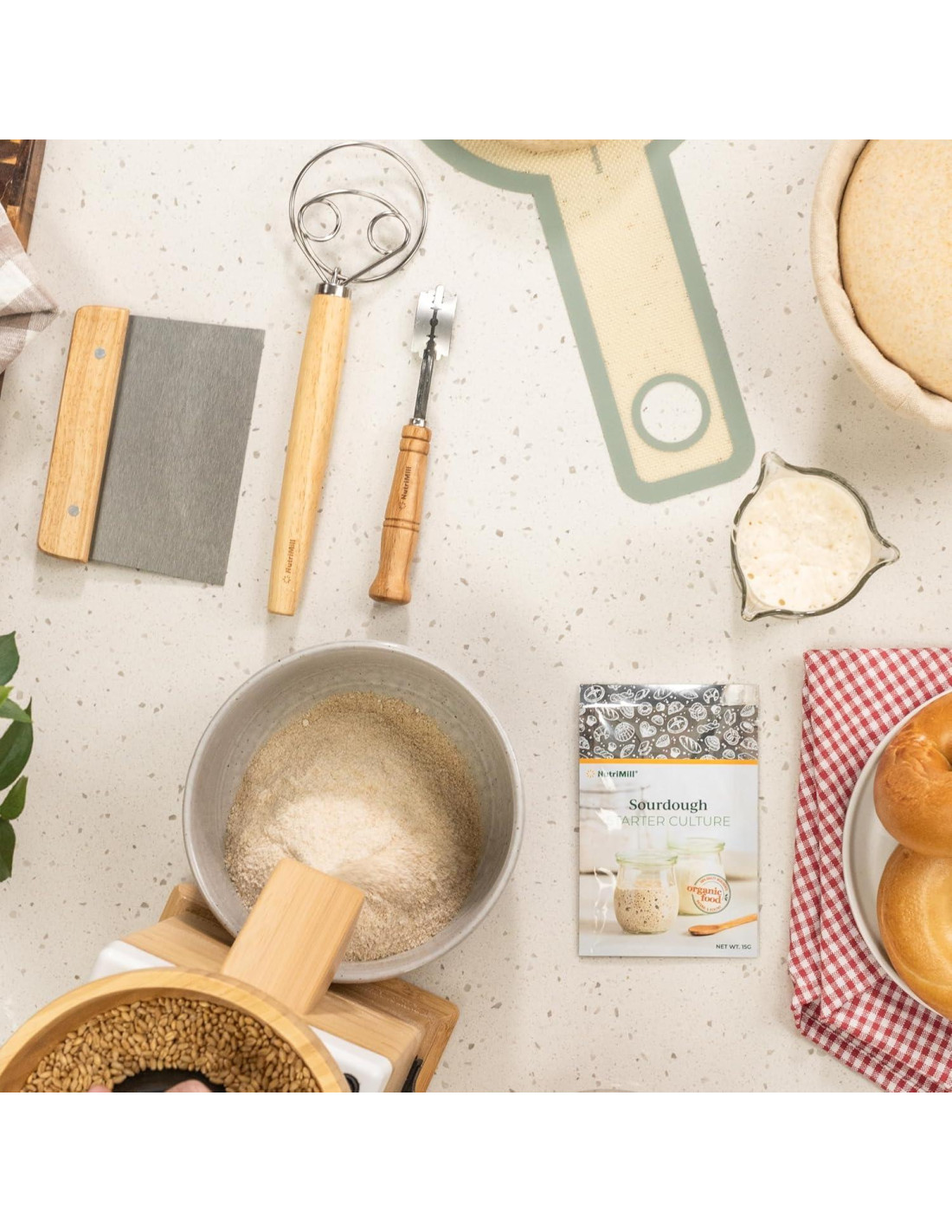 - Kit completo: Un conjunto completo para entusiastas de la repostería, que contiene el equipo esencial para elaborar panes de estilo artesanal en casa.