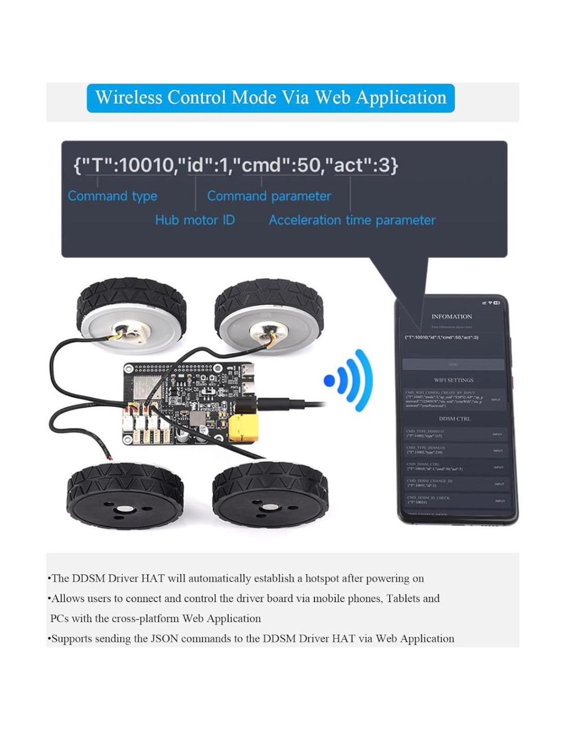 - Aplicación WEB integrada para controlar y configurar los motores de cubo DDSM, más conveniente para la depuración.