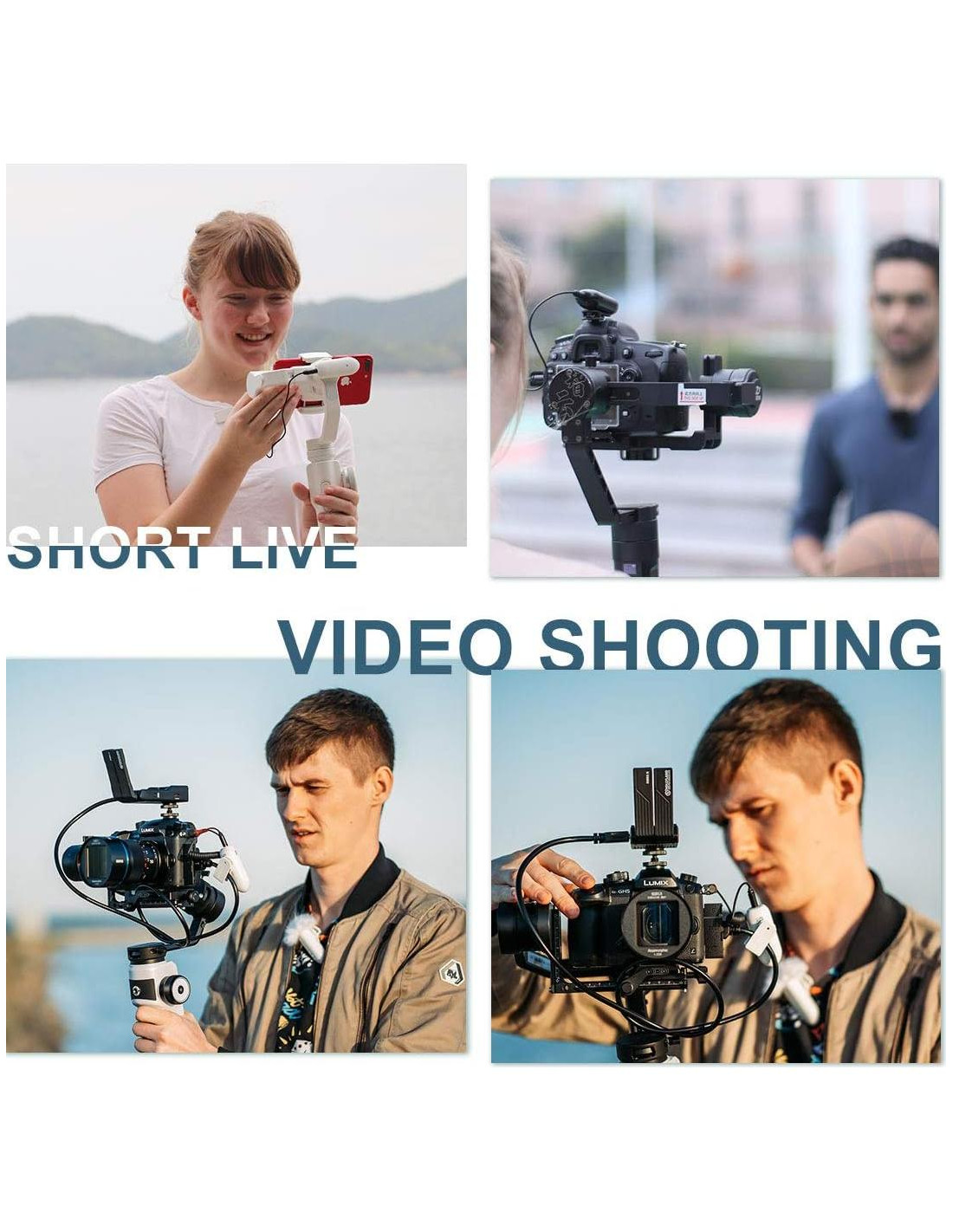 - Fácil de Usar: El método de desmontaje es conveniente y rápido, y tiene una variedad de métodos de uso. El receptor inalámbrico se puede montar en el estabilizador de mano, clip para fijar el transmisor receptor al zapato frío de la cámara y al cuello.