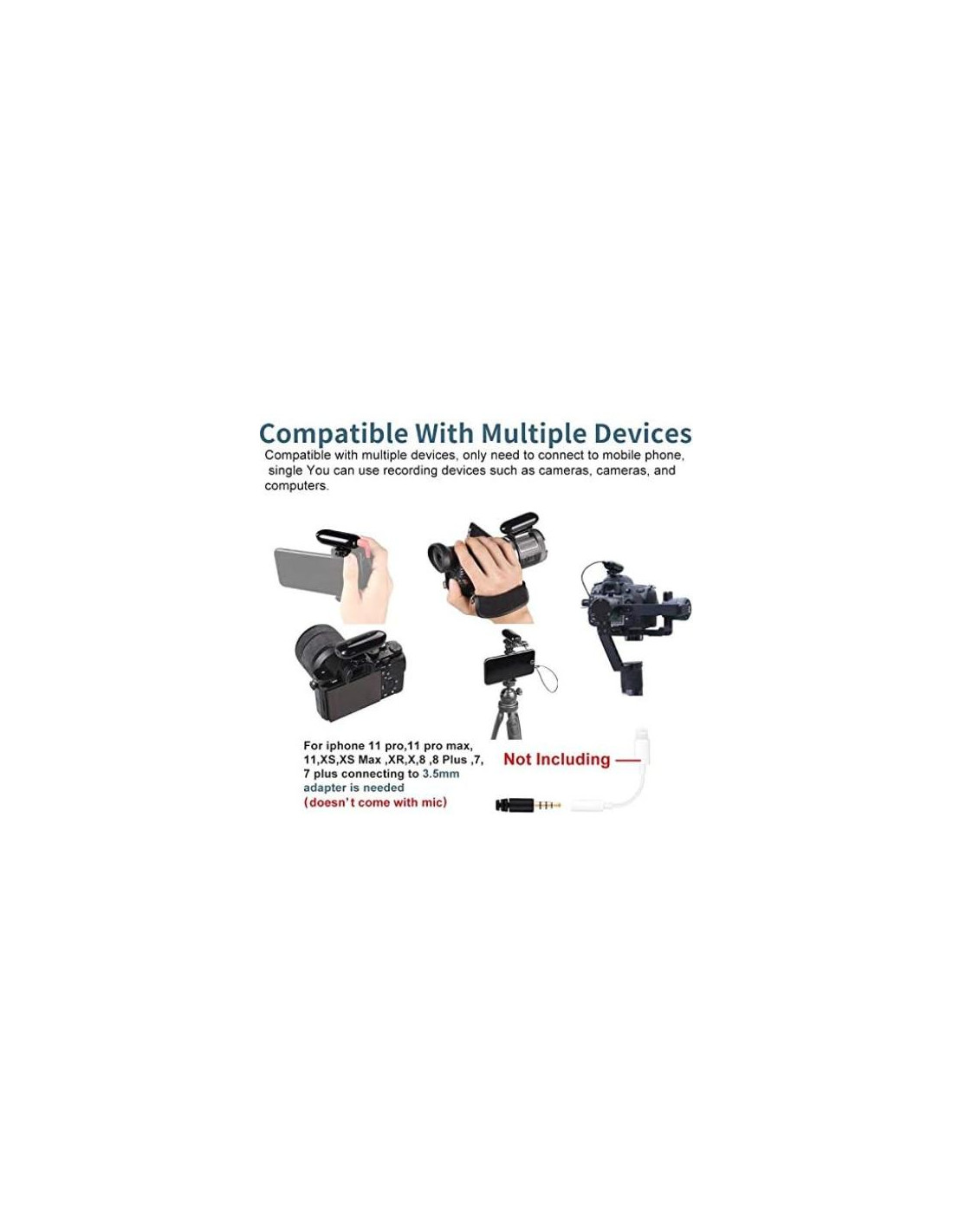 - Anuncios: 1. Solo se debe usar para grabación, no para amplificación; 2. Si se usa en iPhone y iPad, debe comprar un cable adaptador de 3.5 MM hembra TRRS a macho Lightning; 3. Si su smartphone solo tiene un puerto USB-C, debe comprar un cable adaptador de 3.5 MM hembra TRRS a macho USB tipo C; 4. Si se usa en tablet, debe comprar un cable adaptador de 3.5 MM hembra TRRS a macho USB o USB tipo C (para Macbook).