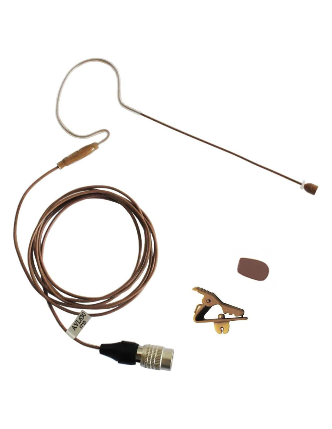 El micrófono de auricular AV-JEFES AVL-630CC-H4P en color cacao está construido con un diámetro de cápsula mini y es el último en perfil bajo, con un rendimiento de captura vocal de alta calidad. (Transmisor de cuerpo no incluido) Frecuencia: 50 Hz - 18,000 Hz Sensibilidad: - 60 dB +/- 3dB Impedancia: 1,500 Ohmios +/- 30% (a 1 Khz) Color: Cacao Dimensiones: 5.2 x 144mm Diámetro de la cápsula: 5mm Voltaje de operación: 1V - 10V DC Compatible con el transmisor de cuerpo inalámbrico Audio Technica Hiroshi Mini de 4 pines