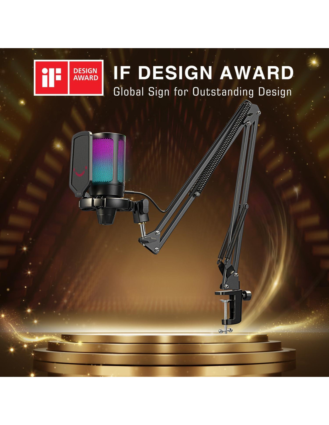 - [Diseño de Iluminación Genial] El RGB automático de dos tonos hace que tu micrófono de PC sea la guinda del pastel. Con efectos de luz suaves y coordinados, más de 7 tipos de modo de color, tu video de juego o streaming en vivo será más llamativo gracias al micrófono USB con brazo de soporte. Haz que tu canal se destaque de la lista de clasificación. Si solo eres un jugador, el rico RGB en el micrófono de streaming para PC que combina con tus accesorios de computadora de colores fluidos puede satisfacer las necesidades de una atmósfera de juego más rica.