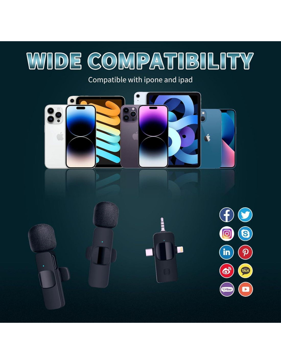 - Alta Compatibilidad; Nuestro micrófono inalámbrico, compatible con iPhones, cámaras, laptops y más, perfecto para vlogging, entrevistas, transmisión en vivo, podcasting y más.
