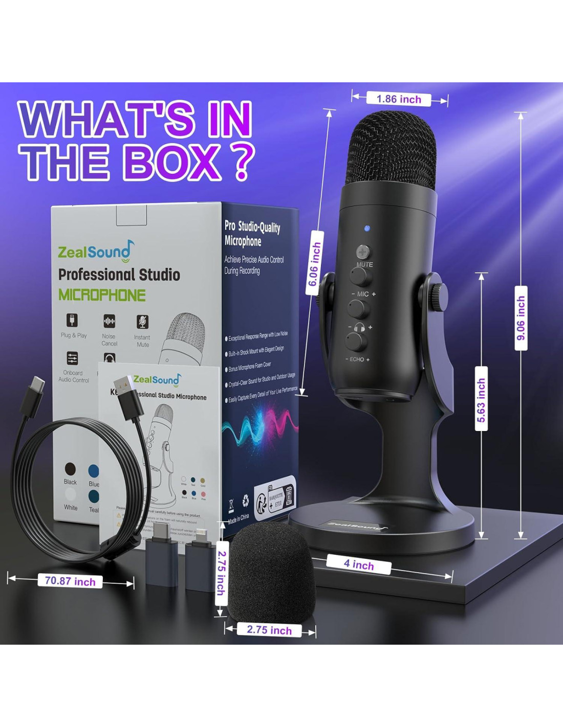 - [Fácil Configuración Plug&Play] Este micrófono de juego USB para computadora está listo para usar con Computadora, Laptop, PC, Windows, Mac OS, PS4 y PS5 directamente de la caja. Conéctalo fácilmente a tu iPhone, Teléfono Tipo C, iPad o Tableta Android utilizando el adaptador USB para iPHONE incluido y el adaptador de Tipo C a USB. No se requieren pasos adicionales de configuración con esta solución plug-and-play. Es simple comenzar a crear contenido en video y participar en plataformas como YouTube, Instagram, Zoom, TikTok, Twitch y podcasting.
