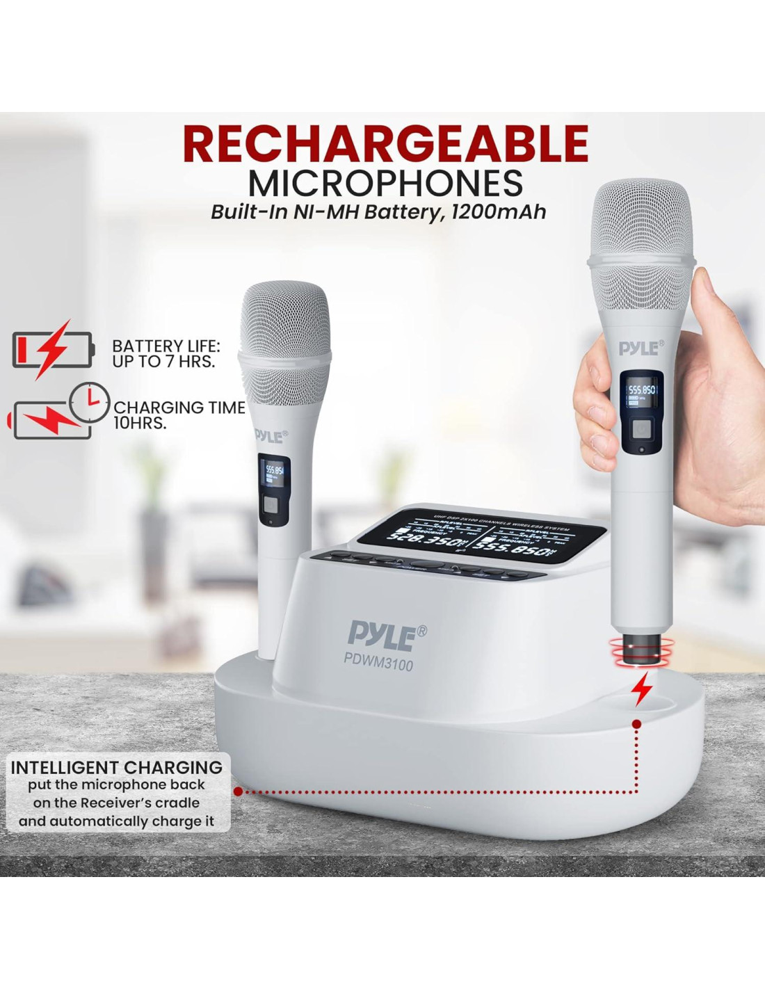 - LARGA DURACIÓN DE LA BATERÍA Y ALCANCE: Equipado con batería NI-MH de 1200mAh, el sistema de micrófono puede durar más de 7 horas de uso y al menos 10 horas de tiempo de carga. También tiene un rango de cobertura de 50-80 m, permitiéndote disfrutar de la transmisión desde lejos