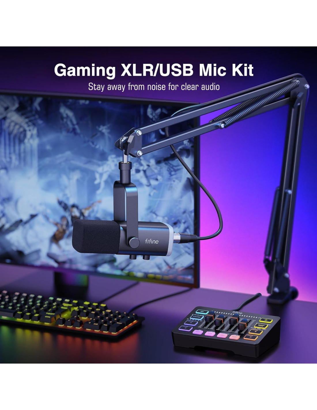 - [Conectividad USB/XLR] Kit de micrófono de PC versátil con compatibilidad USB para PC y compatibilidad XLR para conexión a mezclador o tarjeta de sonido. Una interfaz de entrada de micrófono XLR está configurada en el conjunto de mezclador de audio gaming, lo que es excelente para mejorar tu calidad de audio con tu configuración XLR. El paquete de mezclador XLR es un paso para actualizar tu streaming en vivo. (Cable XLR NO incluido)