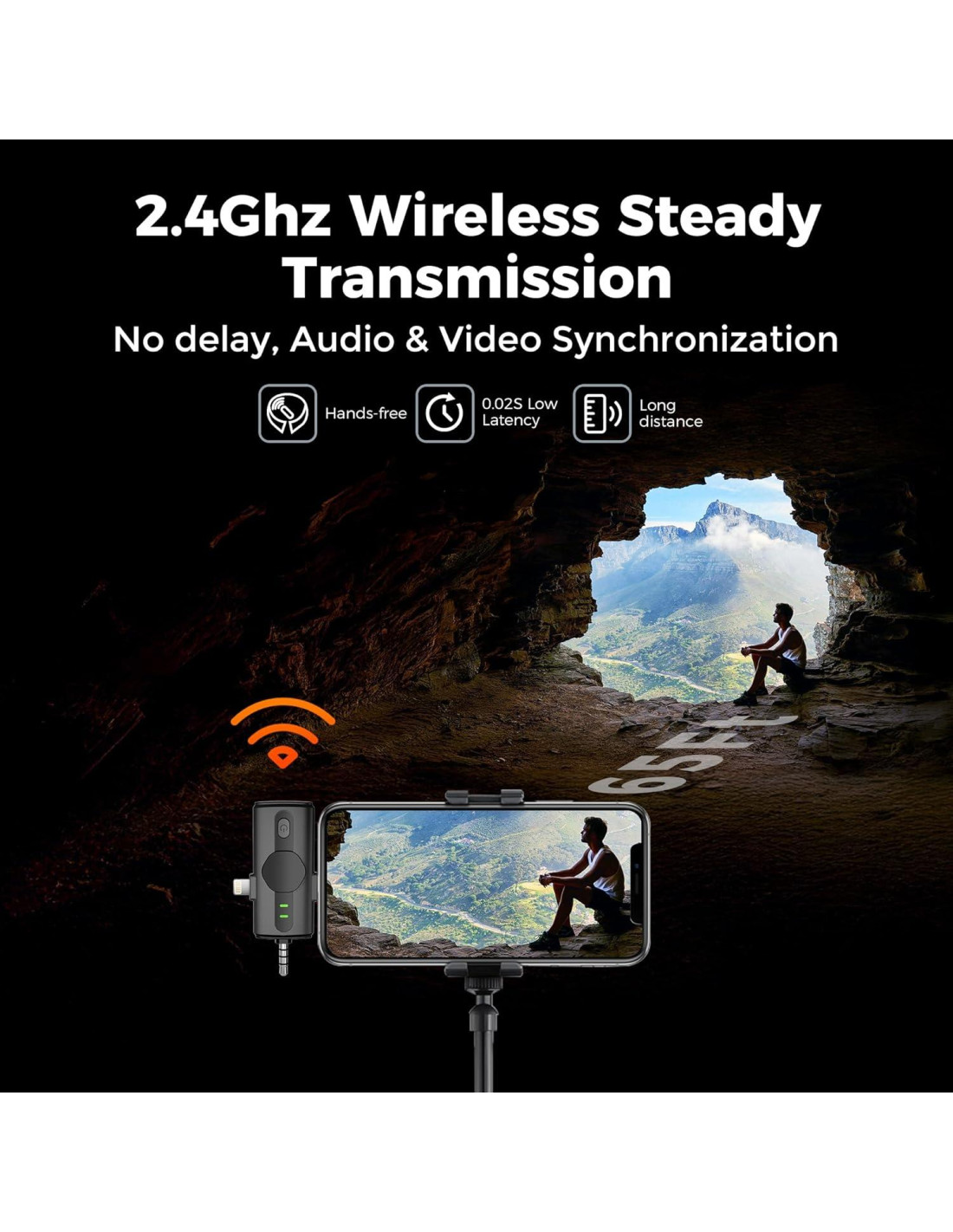 - Transmisión Inalámbrica de 2.4GHz y Conexión a Larga Distancia: El micrófono lavalier adopta tecnología de transmisión inalámbrica de 2.4GHz, con solo 0.02S de latencia ultra baja, seguimiento de imagen en tiempo real. Puedes sostener el micrófono inalámbrico en tu mano o sujetar el micrófono lavalier a tu ropa para ayudarte a deshacerte del desorden de cables. Cubriendo hasta 20 metros (65 pies) de transmisión de señal estable, puedes grabar o filmar video claramente a largas distancias en interiores o exteriores. Además, el diseño ultraligero del micrófono portátil asegura un impacto mínimo en tu ropa, proporcionando calidad de audio profesional y máxima comodidad.