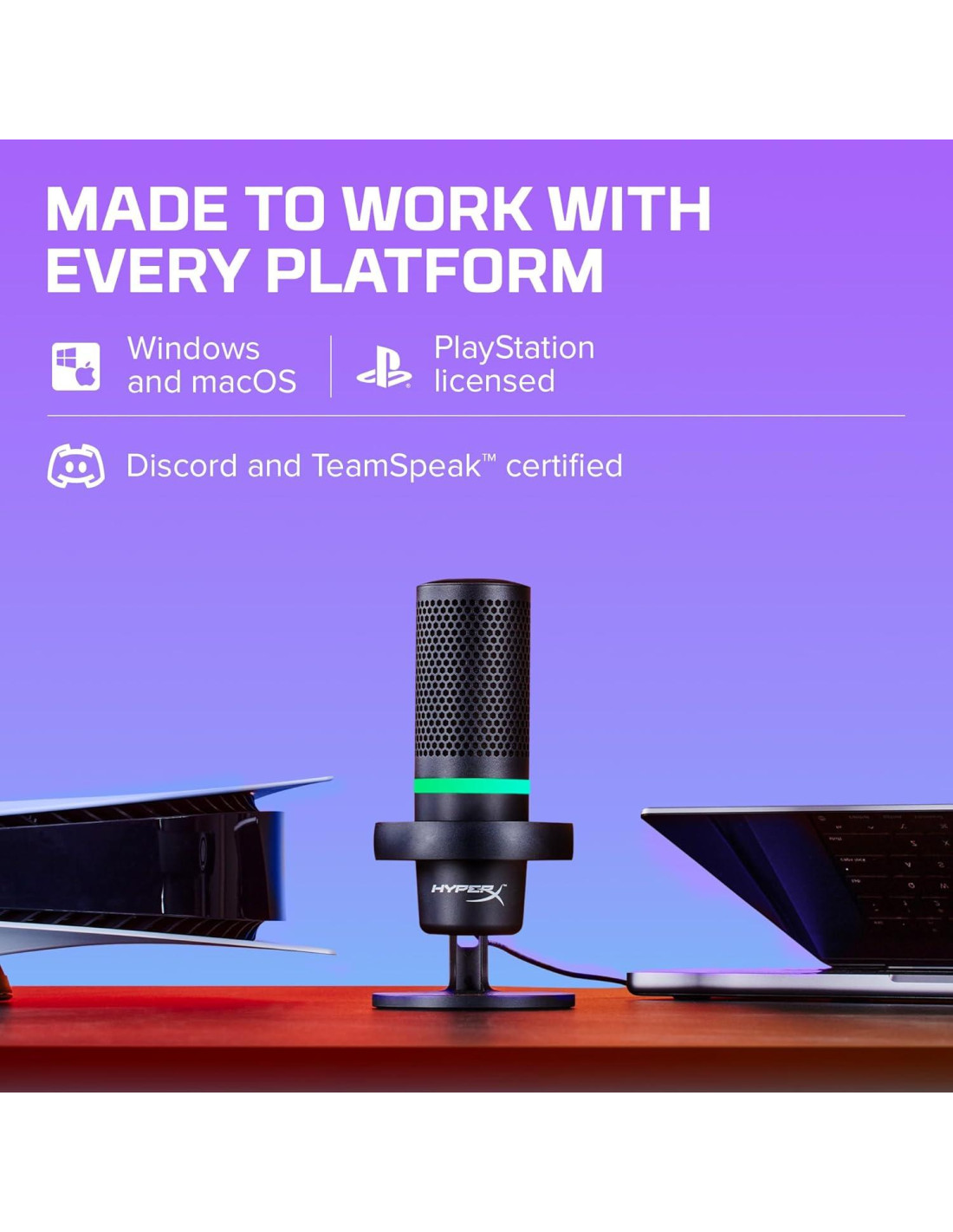 - Compatibilidad con múltiples dispositivos y programas: DuoCast está diseñado para jugar y transmitir en PC, PS5, PS4 y Mac, y es compatible con Discord y TeamSpeak.