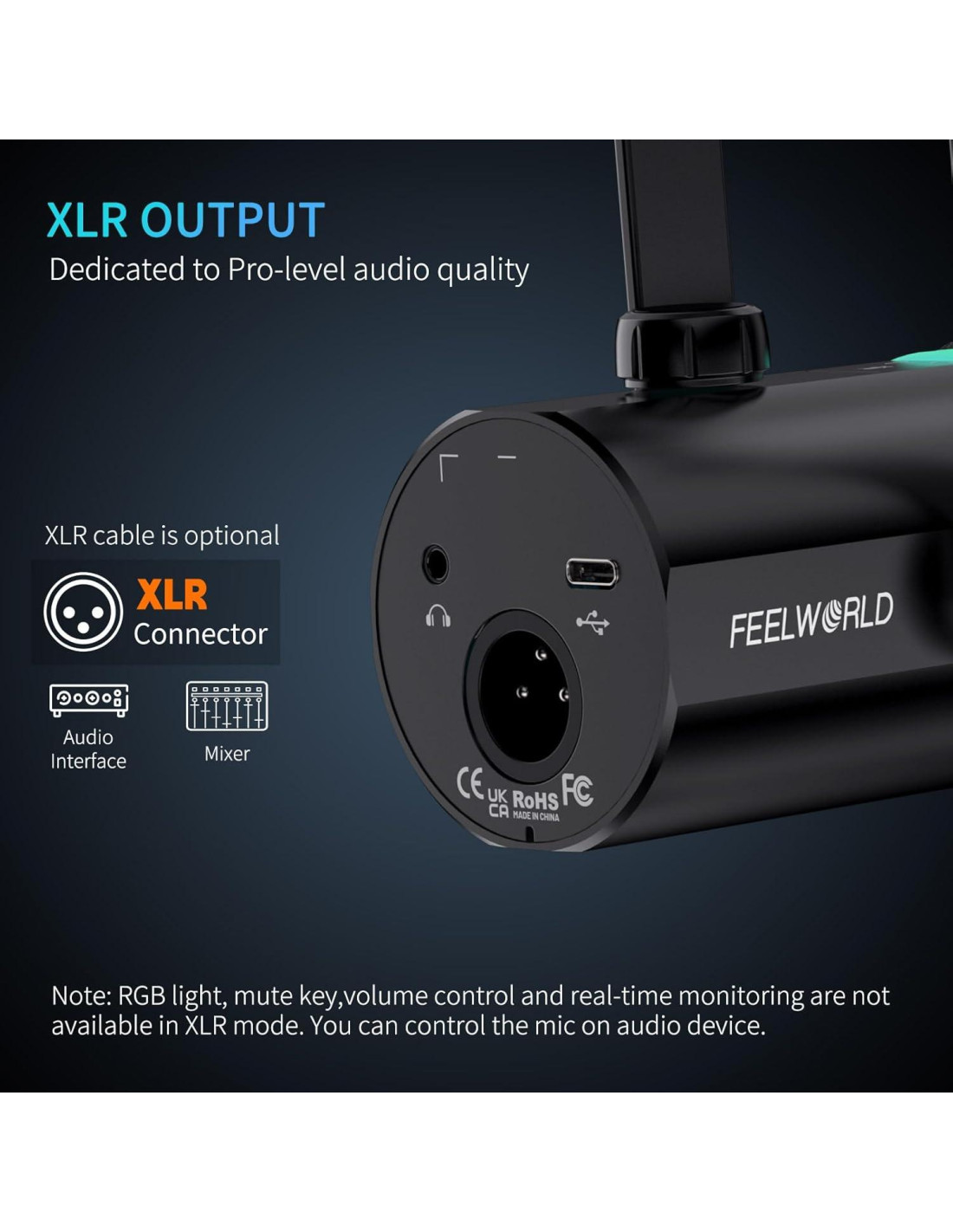 - [Salida XLR] La interfaz XLR mejora la sensación de espacio de audio para un audio de podcast inmersivo. Conéctate a una interfaz de audio, mezclador u otro dispositivo profesional con facilidad a través de XLR sin necesidad de agregar un preamplificador en línea para obtener ganancia adicional.