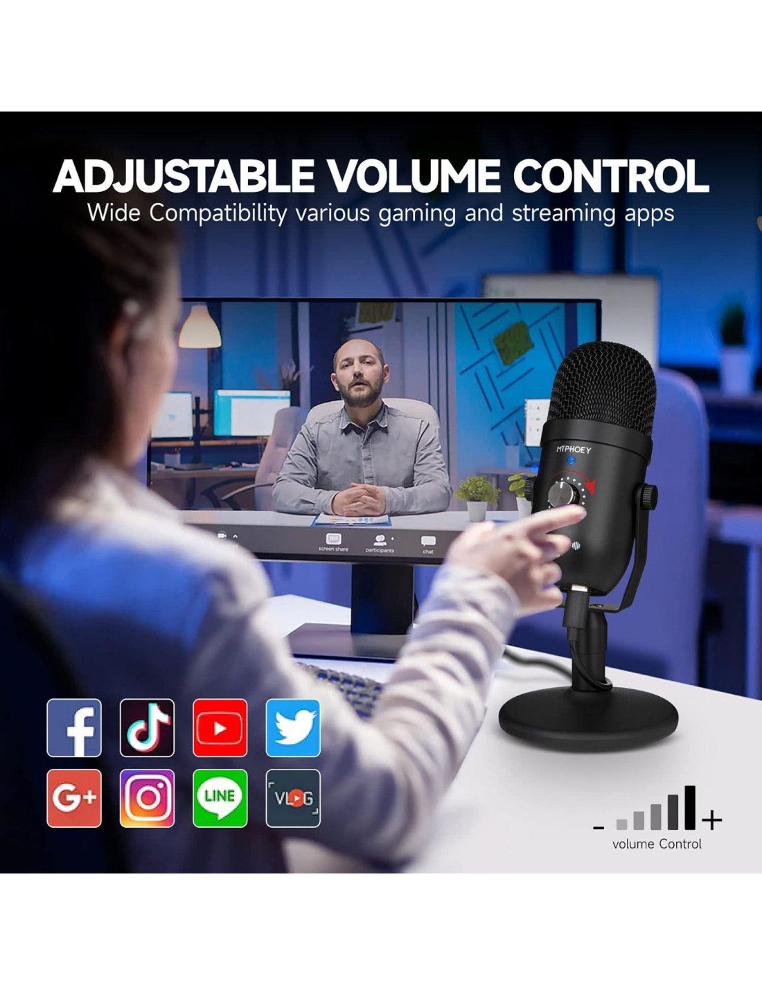 --El micrófono usb cuenta con un control de silencio, volumen, cancelación de ruido y control de volumen del micrófono, el volumen ajustable asegura calidad de monitoreo y conveniencia.
