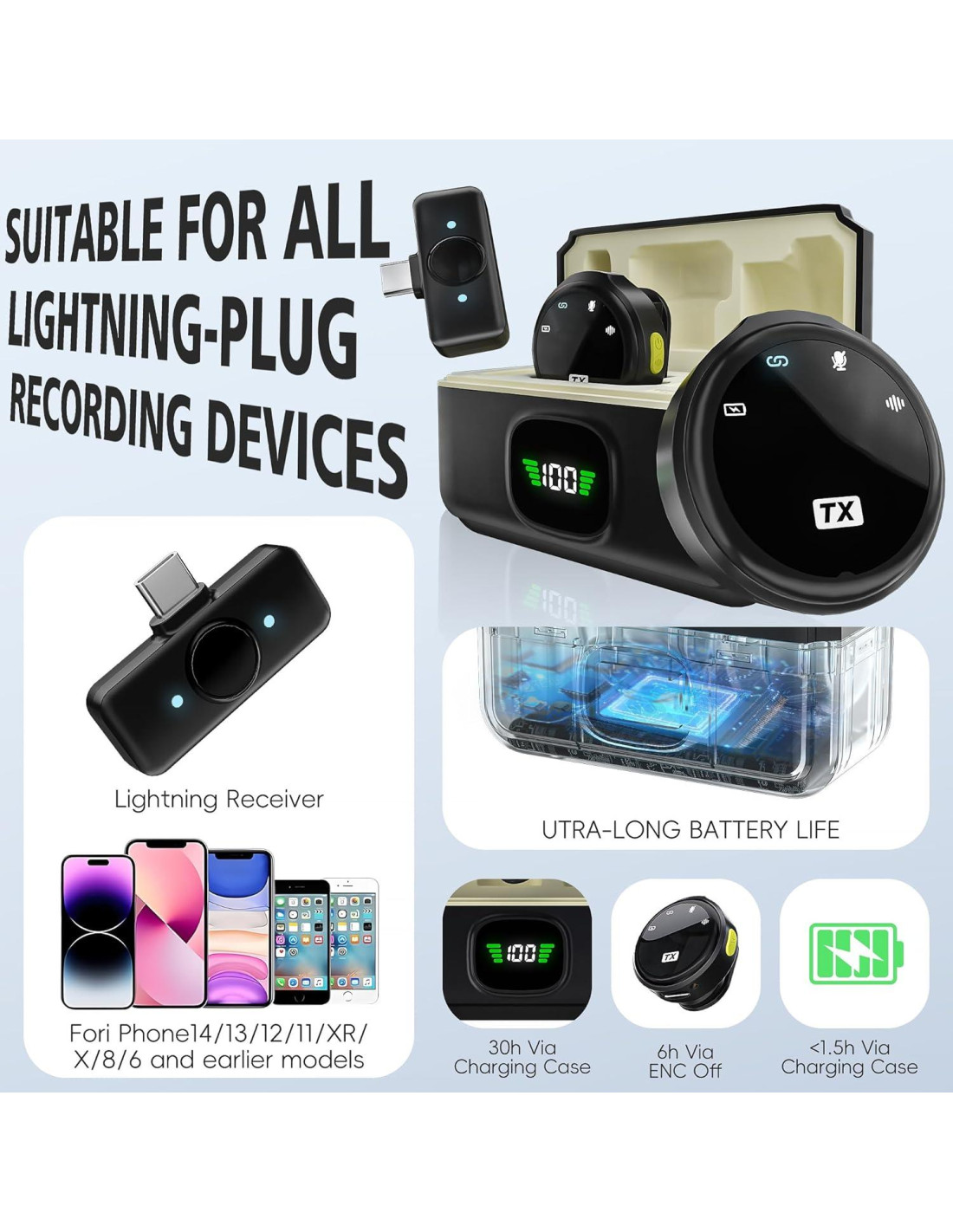 - Receptor de Micrófono Mini Para: Receptor Tipo-C Para iPhone 16/15/Oneplus iPad/Macbook/Samsung Galaxy seriesGoogle Pixel series. Receptor Lightning Para iPhone 14/13/12/11/XR/X/8/6 y modelos anteriores.