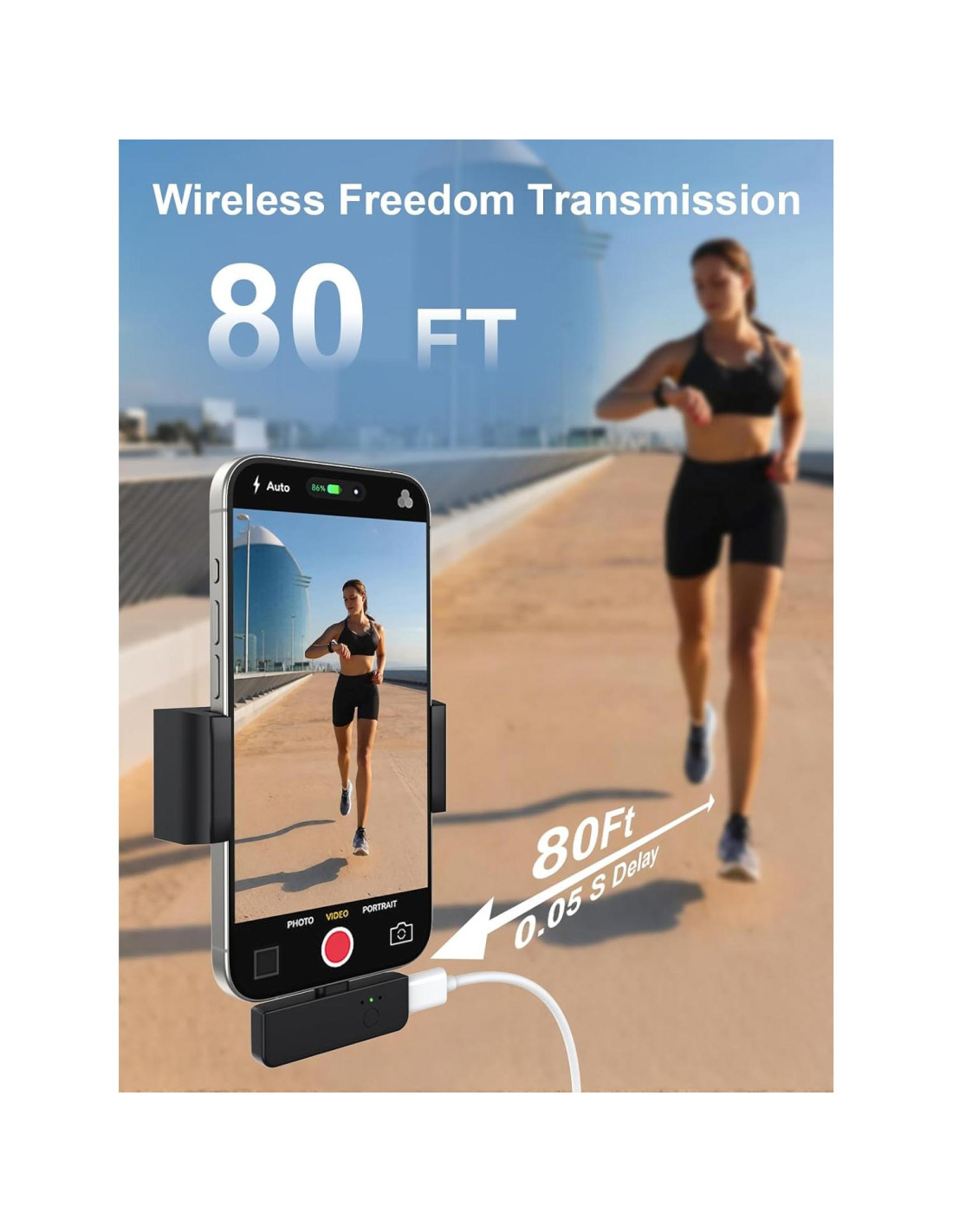 - [CHIP DSP DE ALTA ESPECIFICACIÓN] El micrófono lavalier inalámbrico proporciona un formato de audio de alta especificación de 48Khz-16Bit 65 dB SNR 135 dB SPL, que captura claramente cada detalle del sonido omnidireccional y funciona bien en un entorno de sonidos agudos. Rango de uso óptimo: grabación dentro de 20 M (65.6 FT) (sin barreras)