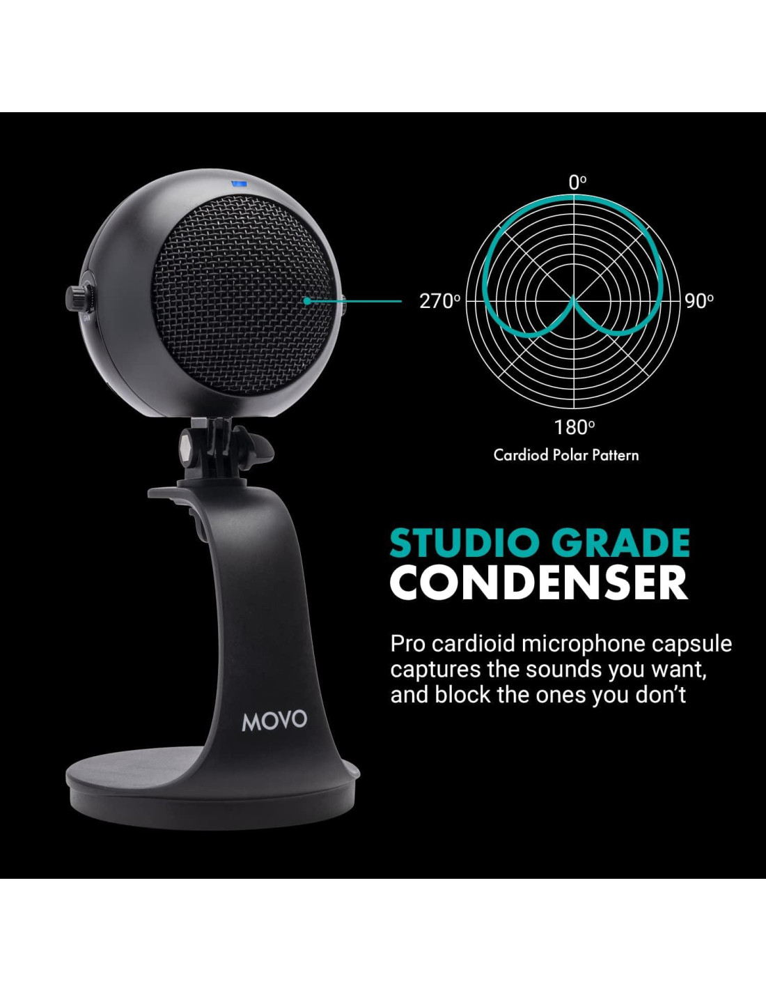 - MICRÓFONO USB DE GRADO DE ESTUDIO: El Movo WebMic combina el audio cristalino que esperas de un micrófono de condensador profesional de estudio y la conveniencia de un micrófono USB plug-and-play