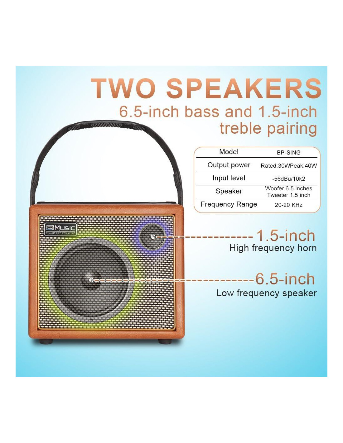 - Sonido potente para cualquier ocasión: Perfecto para fiestas de karaoke en casa, el BP SING te permite ajustar el volumen según tu gusto. Cuenta con dos altavoces (woofer de 6.5 pulgadas y tweeter de 1.5 pulgadas) con un sonido impresionante, incluso al aire libre, sin comprometer la calidad de audio.