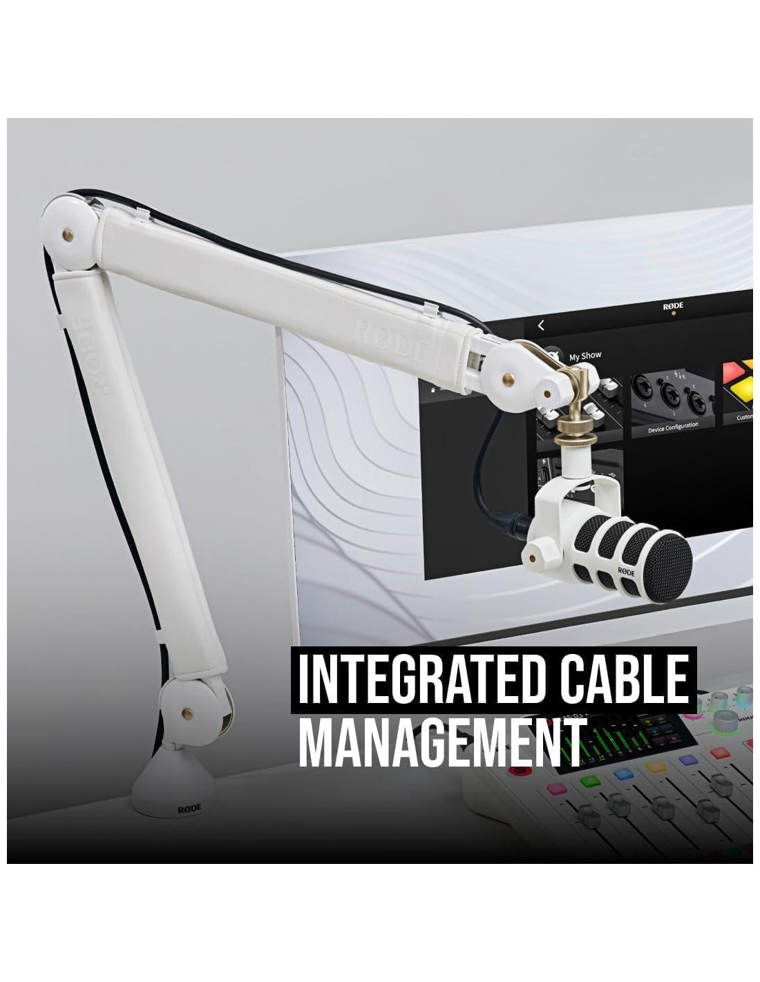 - Brazo de micrófono ajustable con un alcance de 81 centímetros horizontalmente y 84 centímetros verticalmente