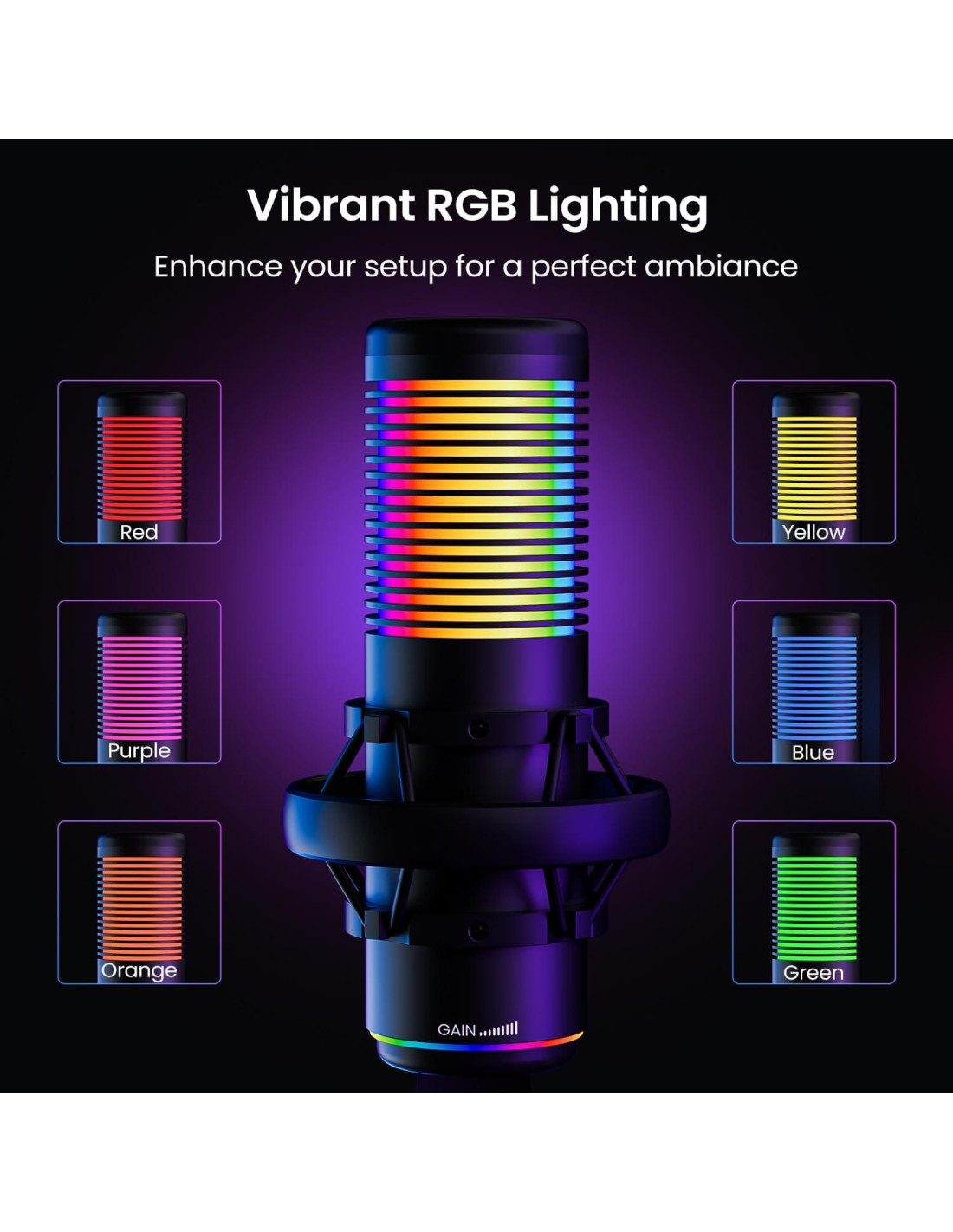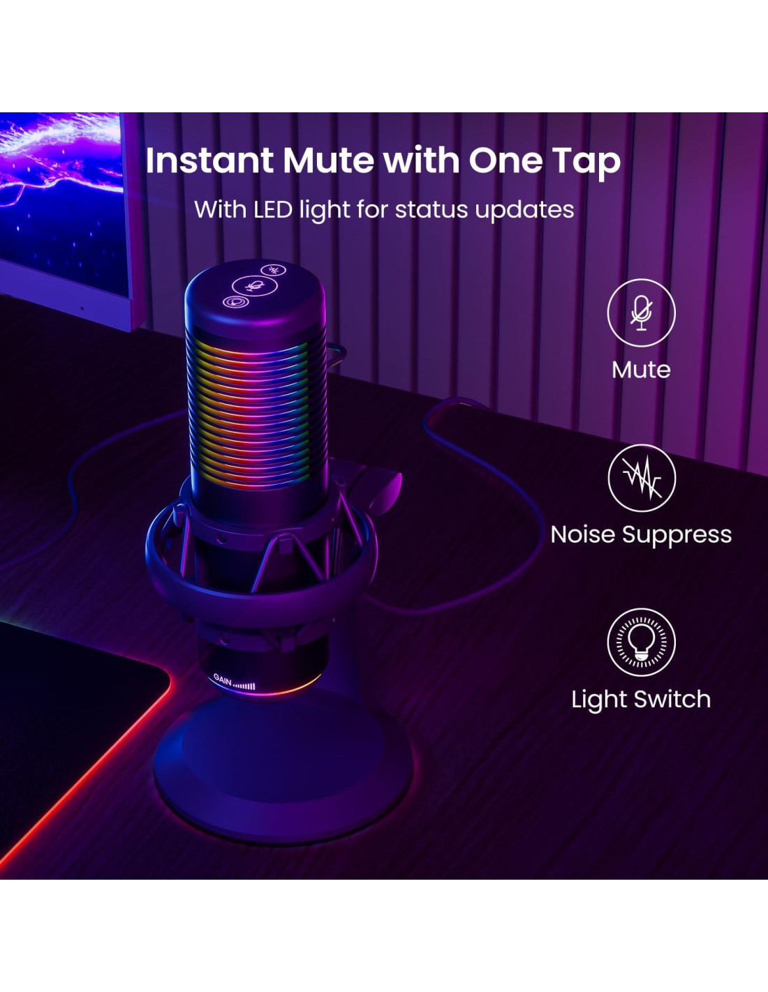 - Luces indicadoras LED: Mantente informado con las luces indicadoras LED. Rojo indica silencio, mientras que azul muestra que la cancelación de ruido está activa. Monitorea fácilmente el estado del micrófono de un vistazo.