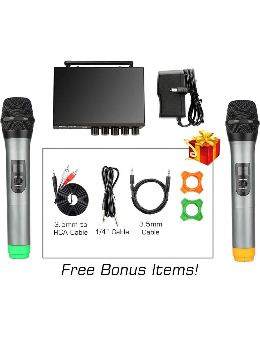 - 3 vocalistas pueden cantar karaoke juntos. Entrada de 1/4 de pulgada para micrófono inalámbrico adicional (no incluido pero se puede encontrar en Fifine). Control de volumen separado para cada micrófono inalámbrico. Perfecto para karaoke, fiestas, escuelas e iglesias.