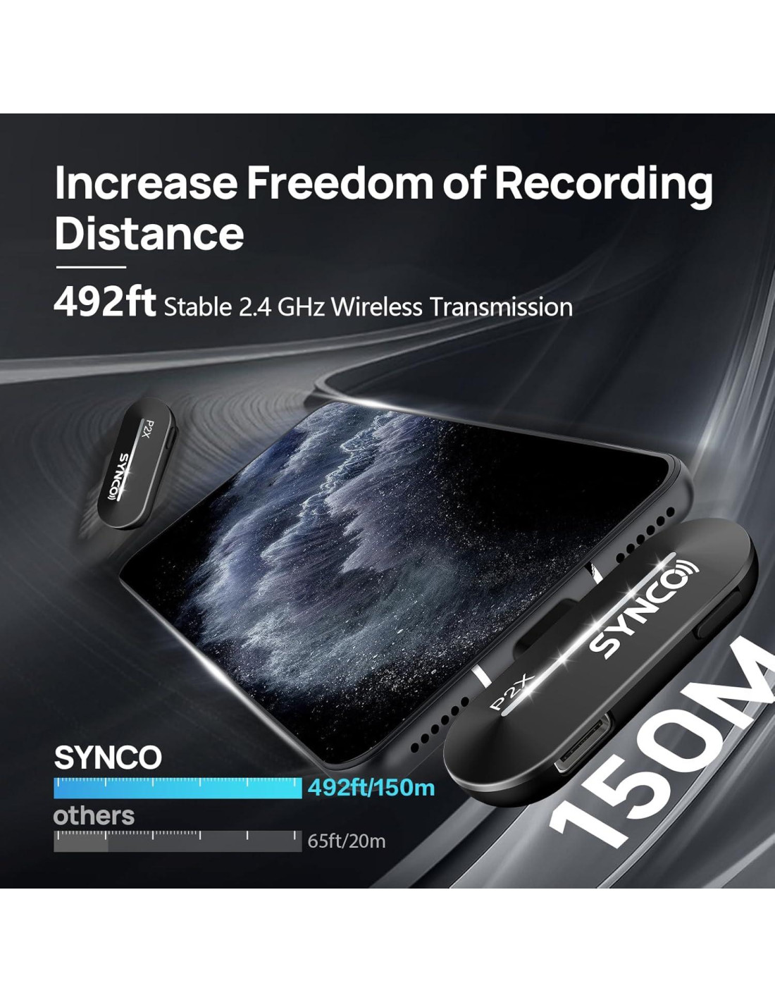 - [Grabaciones Claras en Rango de 492ft/150m] Los micrófonos de solapa SYNCO alimentados por Syncoder 3.0 y un chip DSP inteligente, son ideales para videollamadas o grabaciones, filtran el ruido de fondo y entregan sonido claro hasta, ideales para entrevistas, reuniones virtuales, grabación de podcasts, vlogging, transmisión en vivo, en interiores y exteriores, dispositivo ideal para creadores de videos de YouTube y Tiktok.