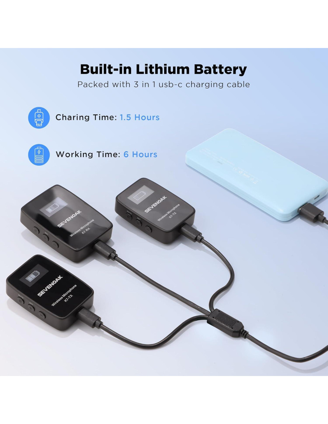 - Silencio con un botón y 7 niveles de ganancia: Con 7 niveles de ganancia y función de silencio con un botón en el transmisor, puedes ajustarlo libremente según tus necesidades para lograr excelentes resultados de grabación