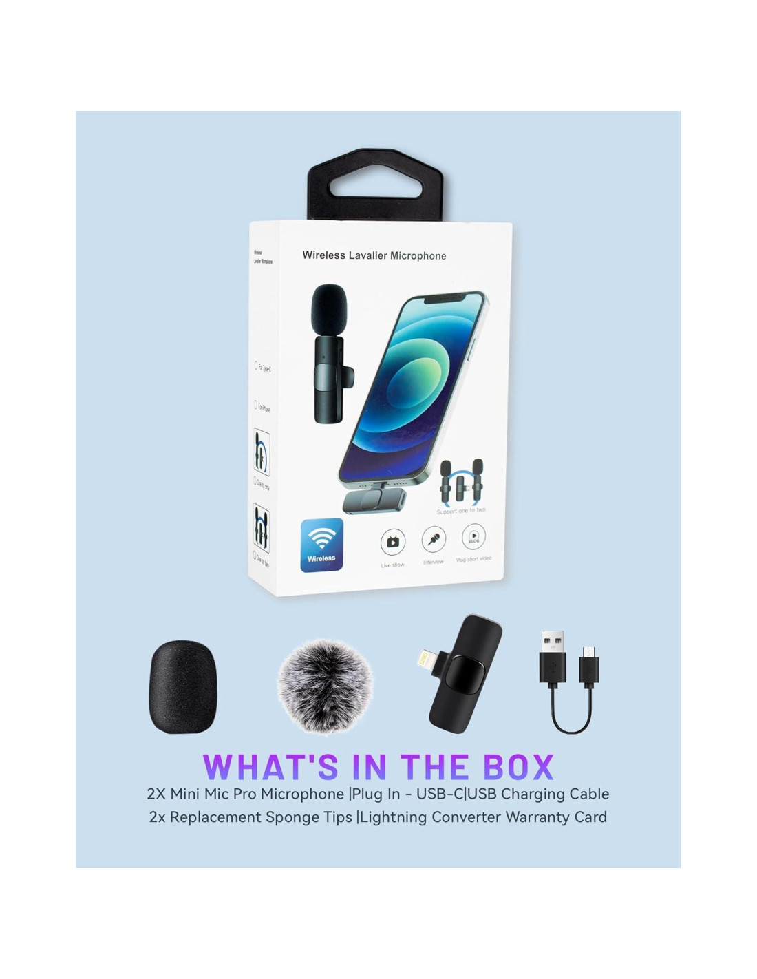 2pcs Micrófono Lavalier Inalámbrico para iPhone iPad, Micrófono Inalámbrico para Grabación de Video, Transmisión en Vivo de Juegos, Entrevistas, YouTube, TikTok, Vlog