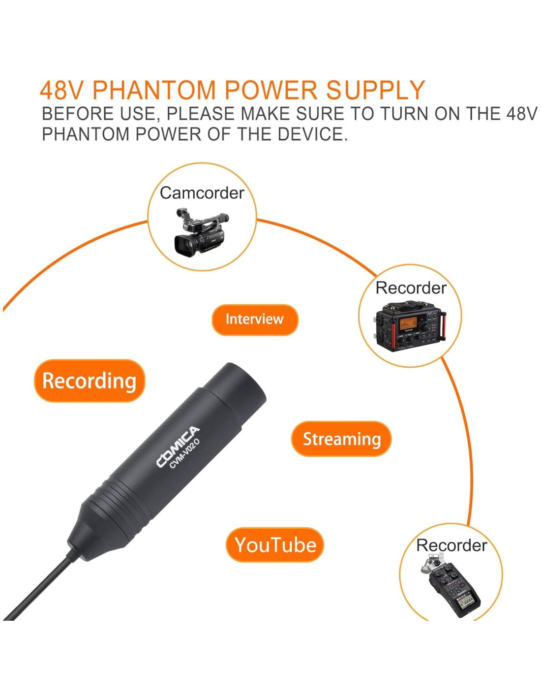 - [No se Requieren Baterías] Usado en +48V Phantom Power. Este micrófono funciona con grabadoras Canon Sony Panasonic ZOOM H5 H6 TASCAM. Antes de usar, asegúrese de encender la alimentación phantom de 48V del dispositivo.