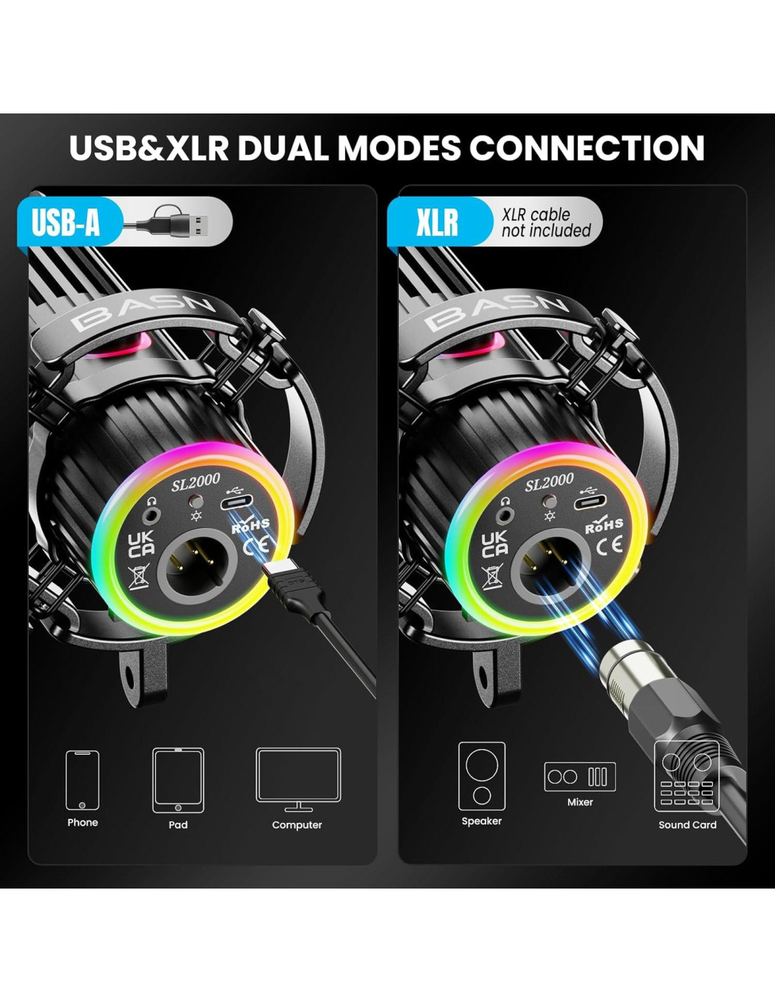 - [Captura de Sonido Direccional] - Micrófono de patrón cardioide BASN SL2000 enfocado en la captura de sonido, más efectivo en filtrar el ruido ambiental; Asegurando que puedas presentar las voces más puras en podcasting, streaming, juegos y grabación